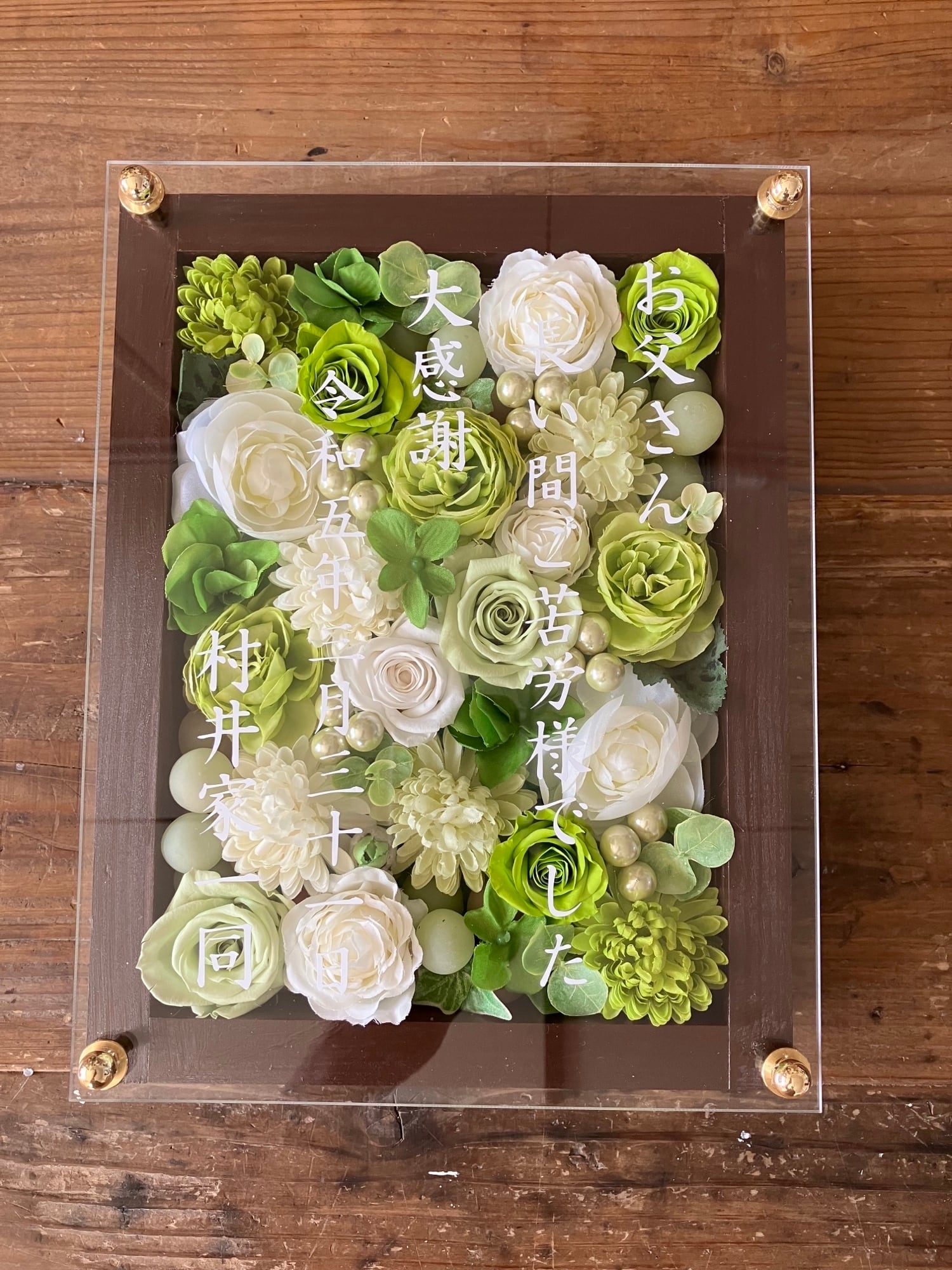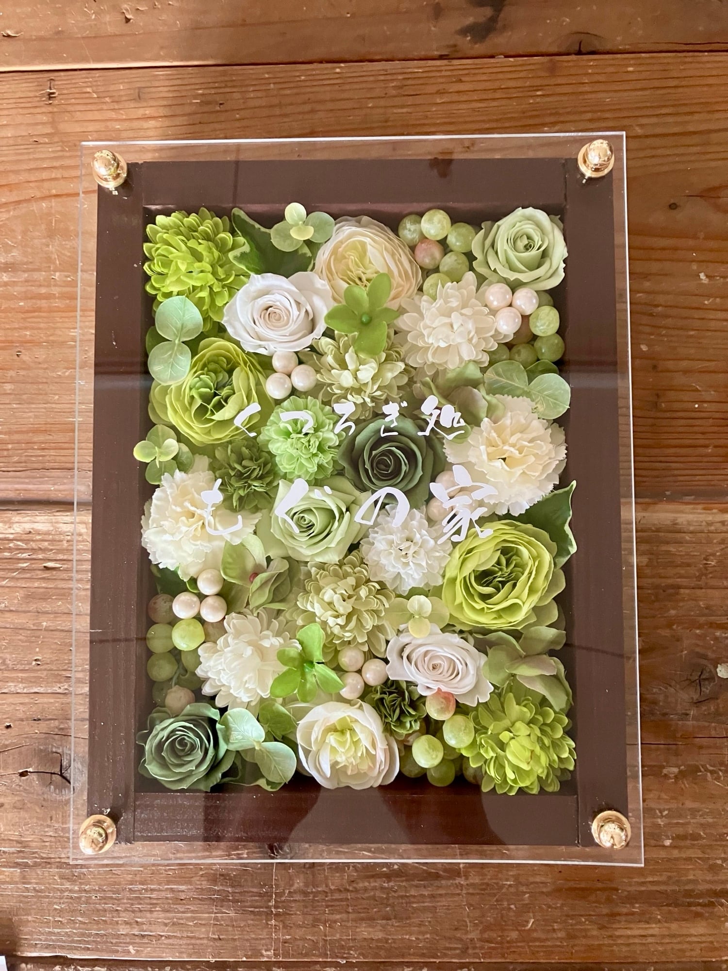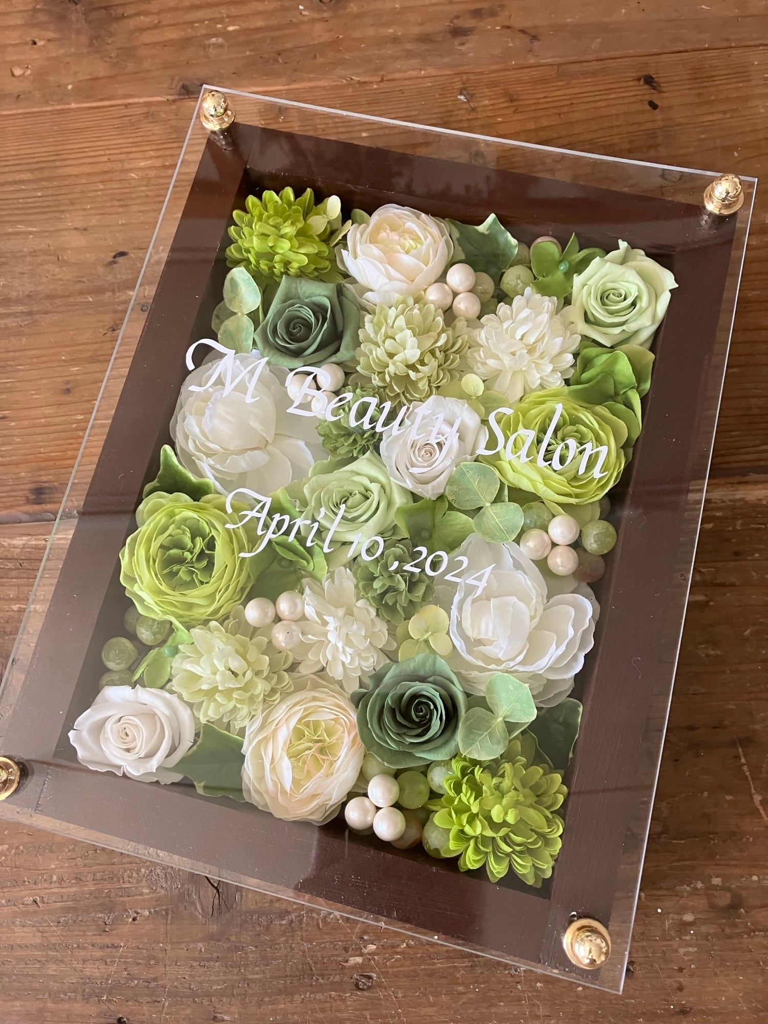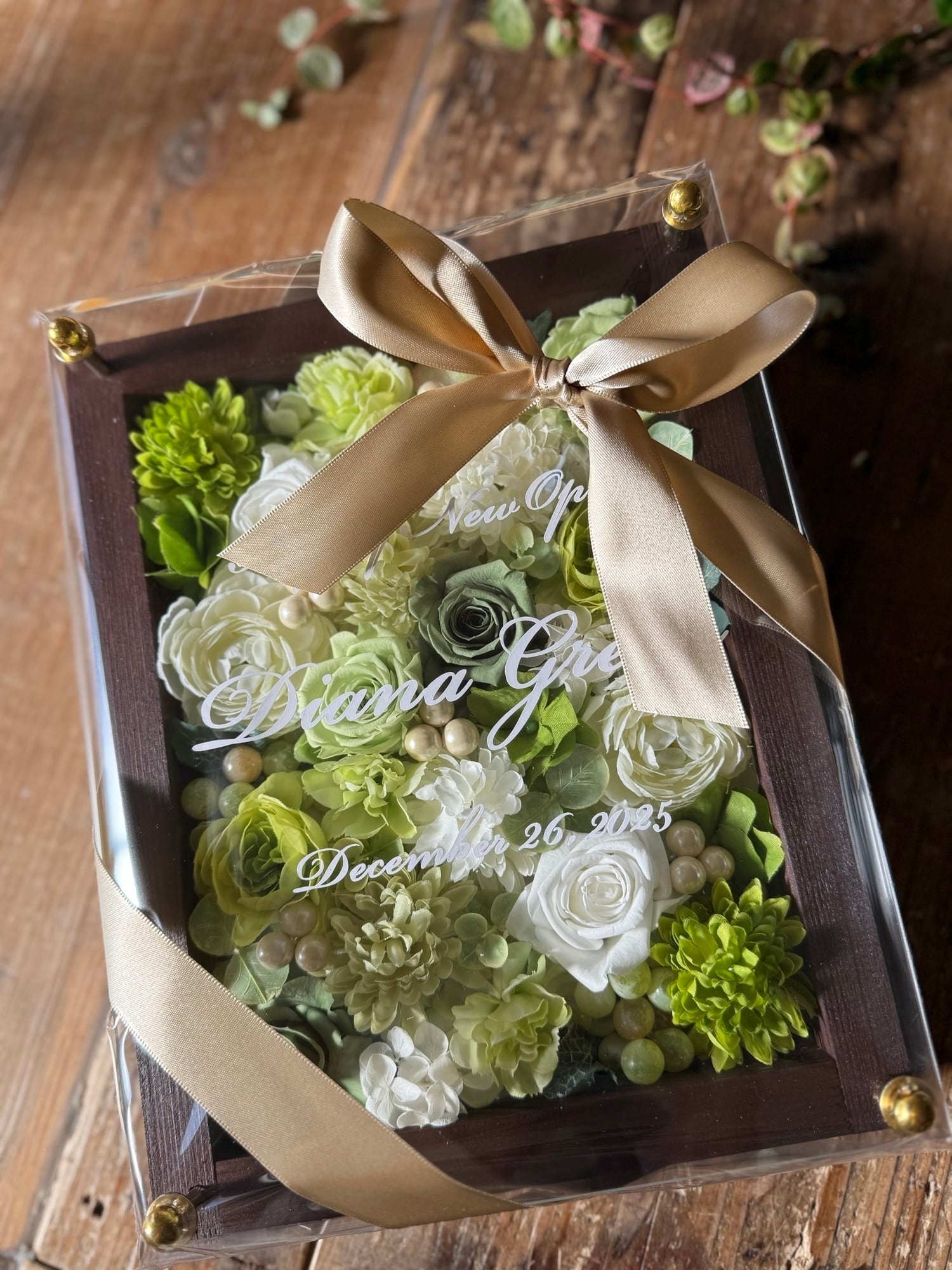 サンクスギフト|茶木枠〈白グリーン〉名入れ可/結婚・開店・お供え・記念品に