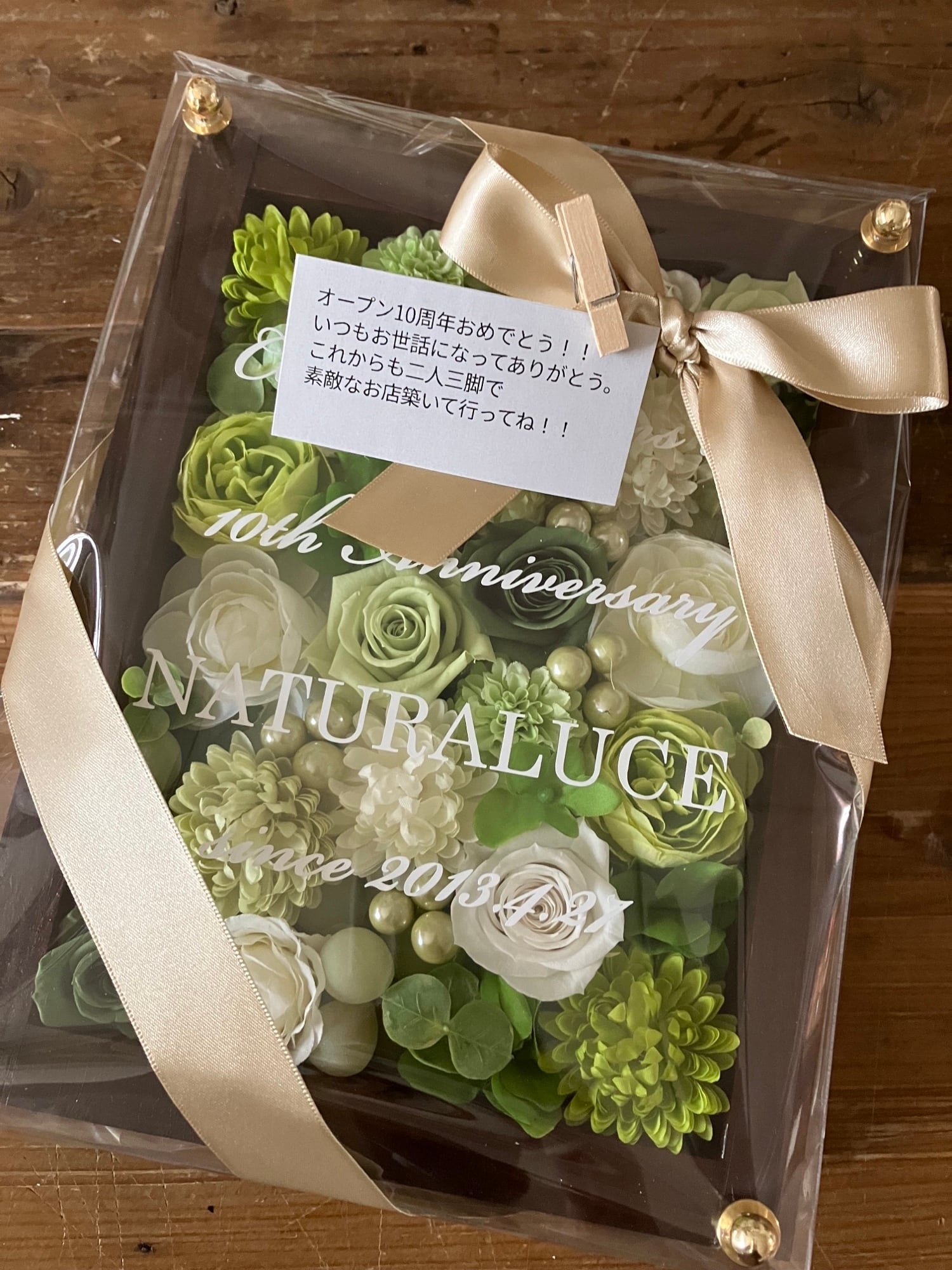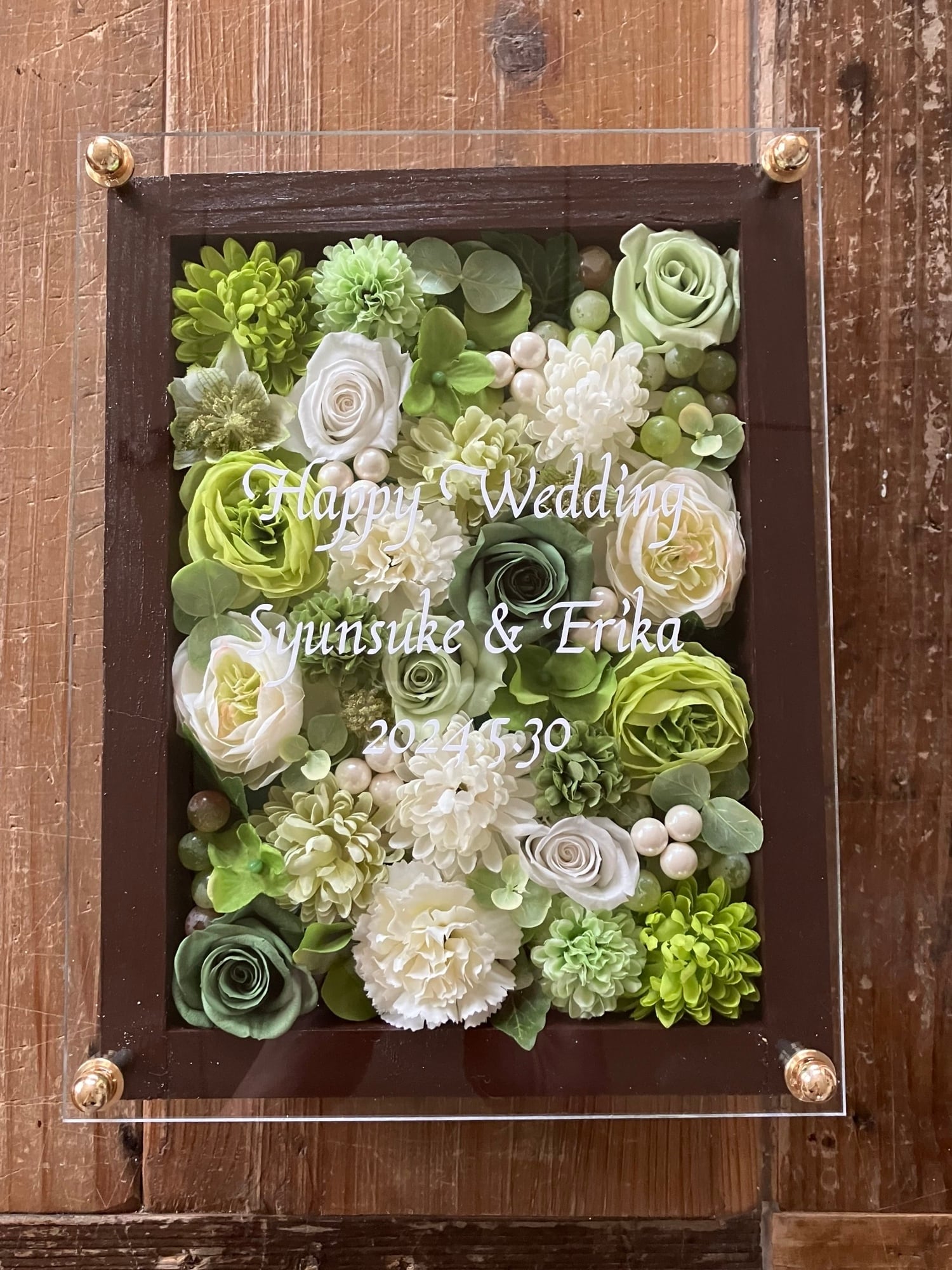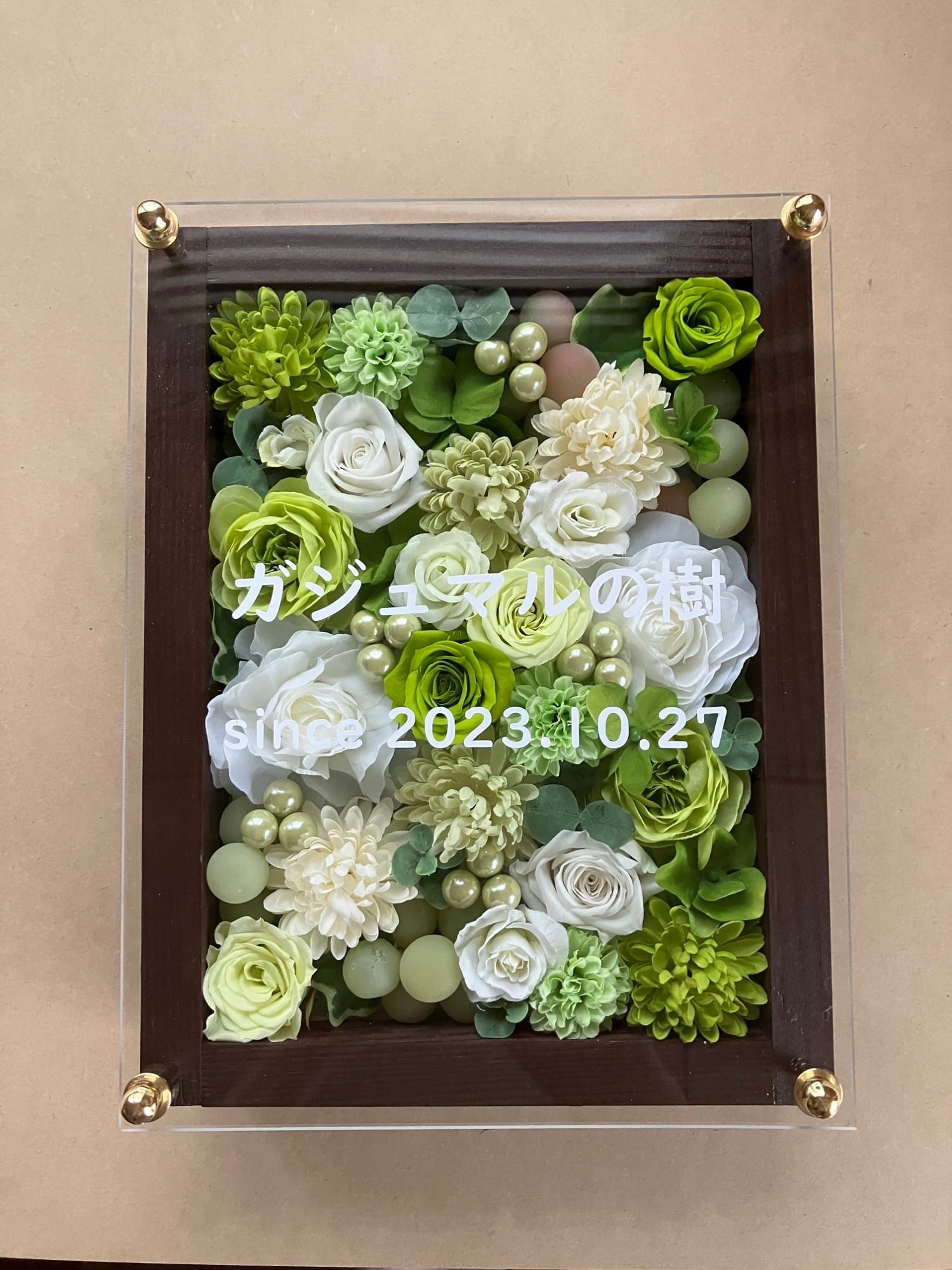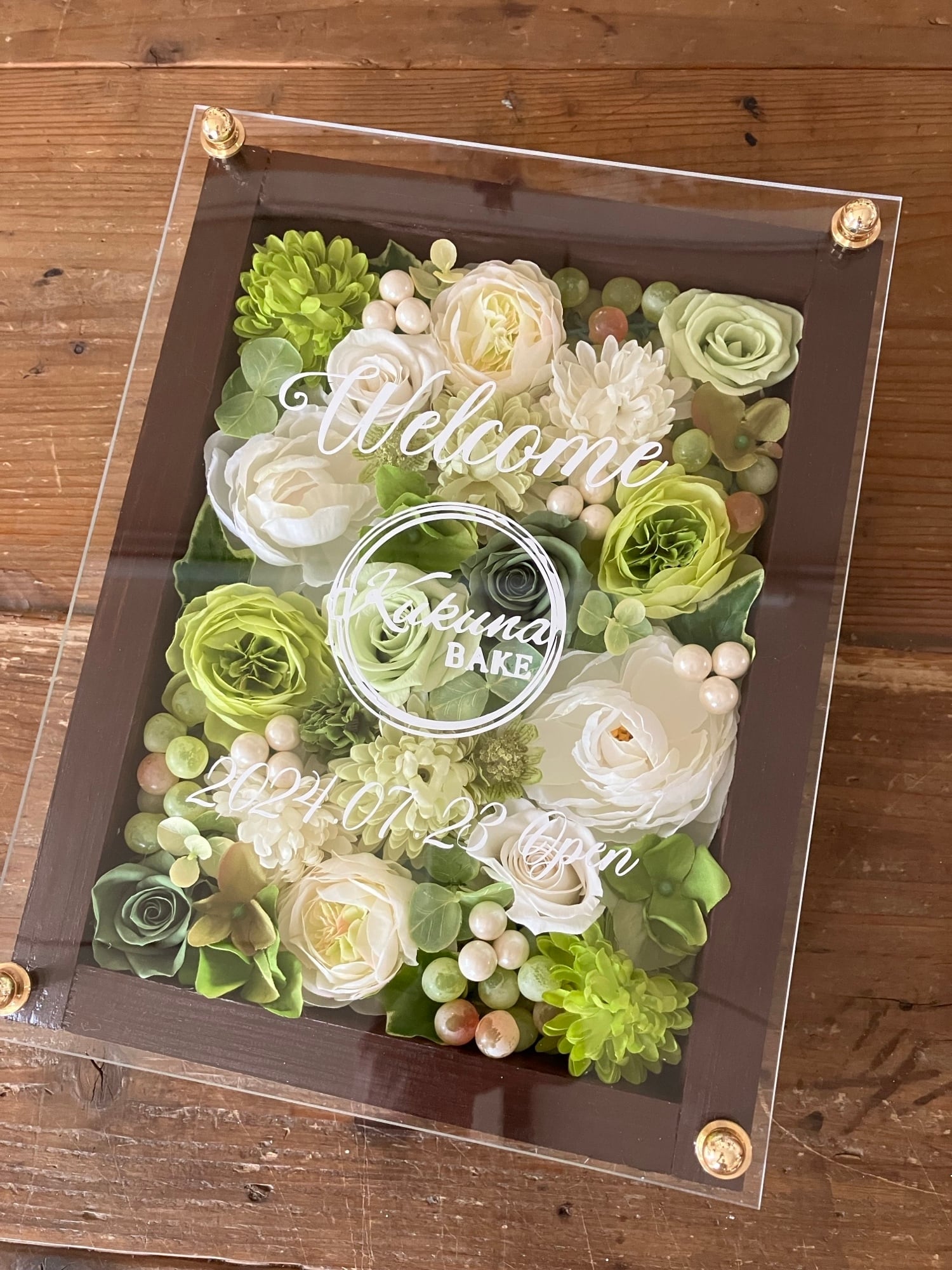 サンクスギフト|茶木枠〈白グリーン〉名入れ可/結婚・開店・お供え・記念品に