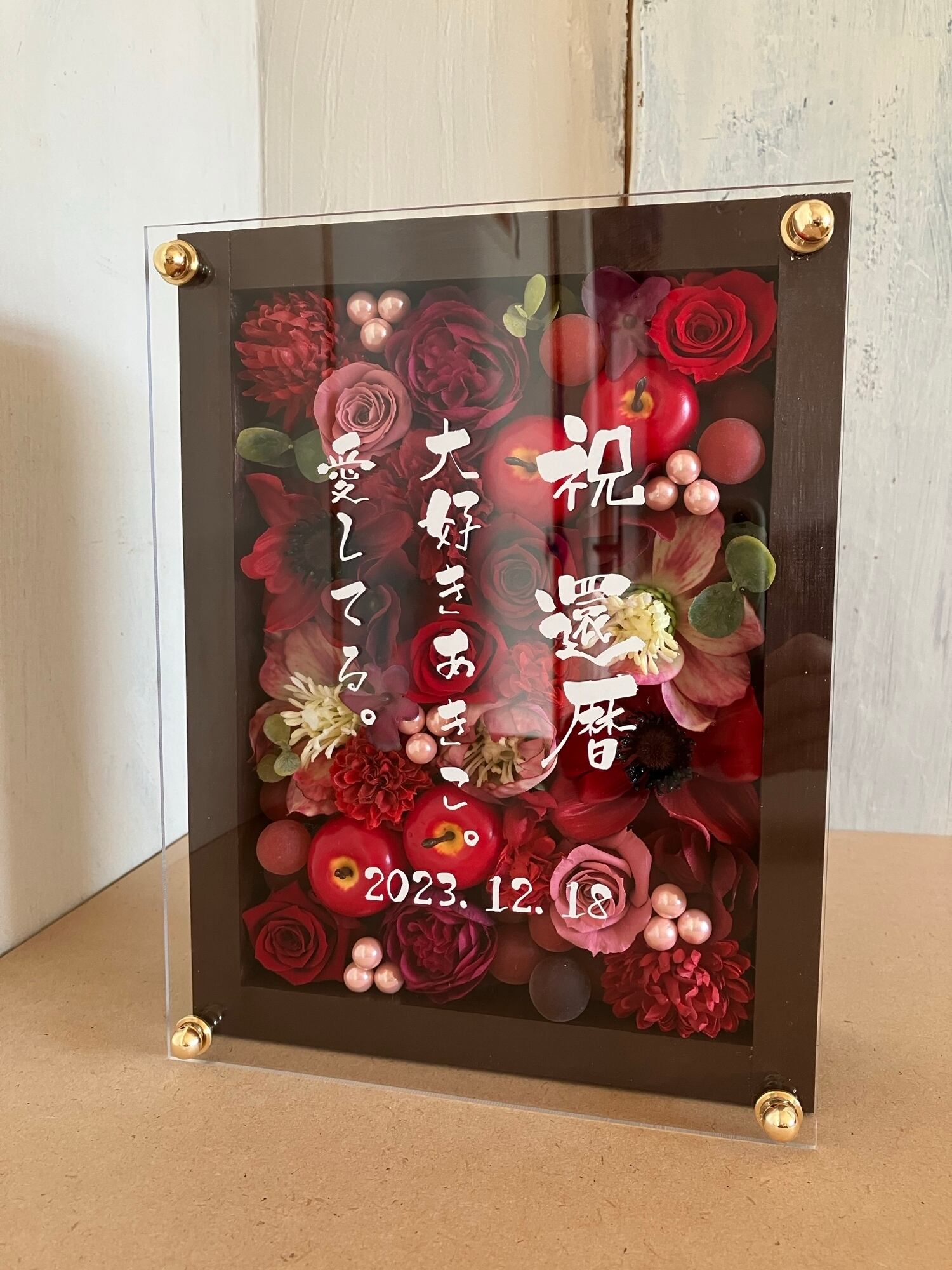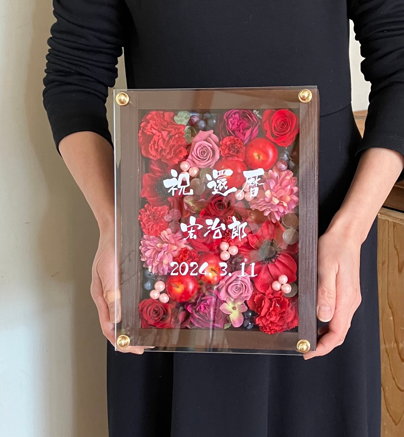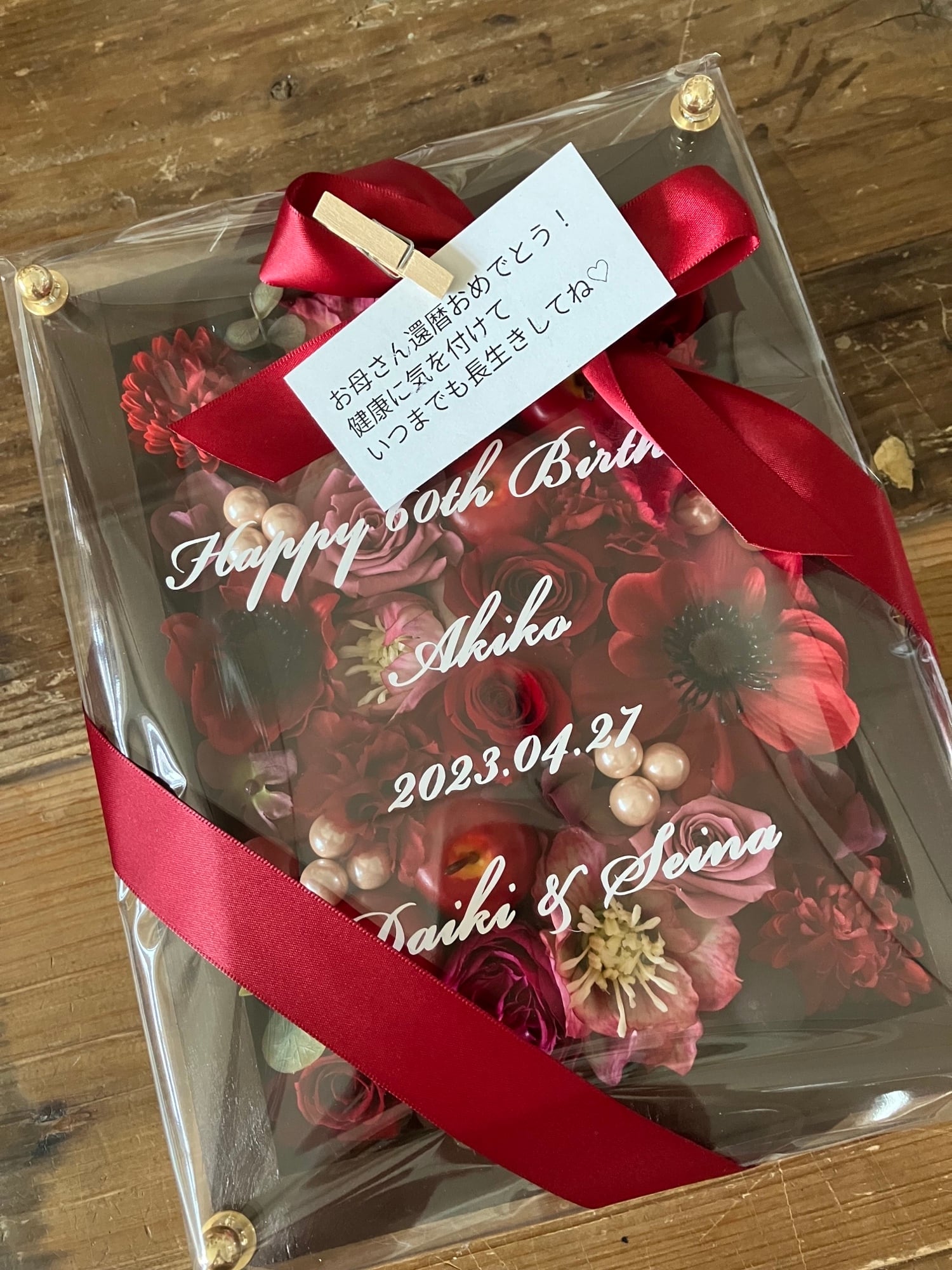 サンクスギフト|茶木枠〈レッド〉名入れ可/還暦・退職・結婚記念日祝いに