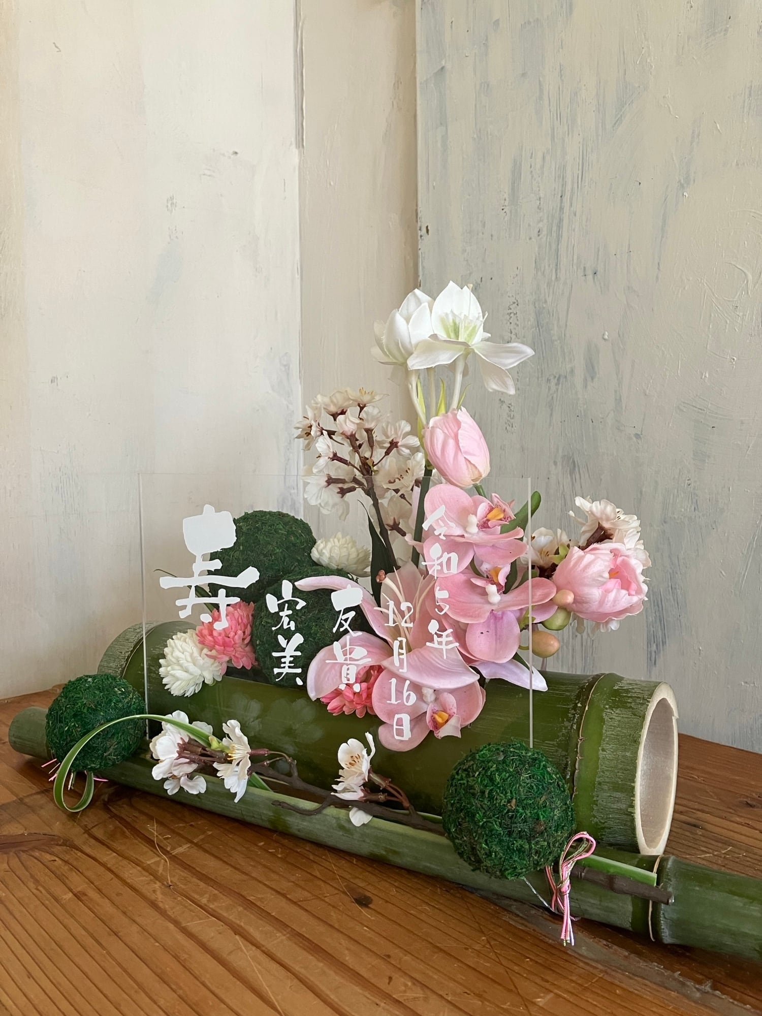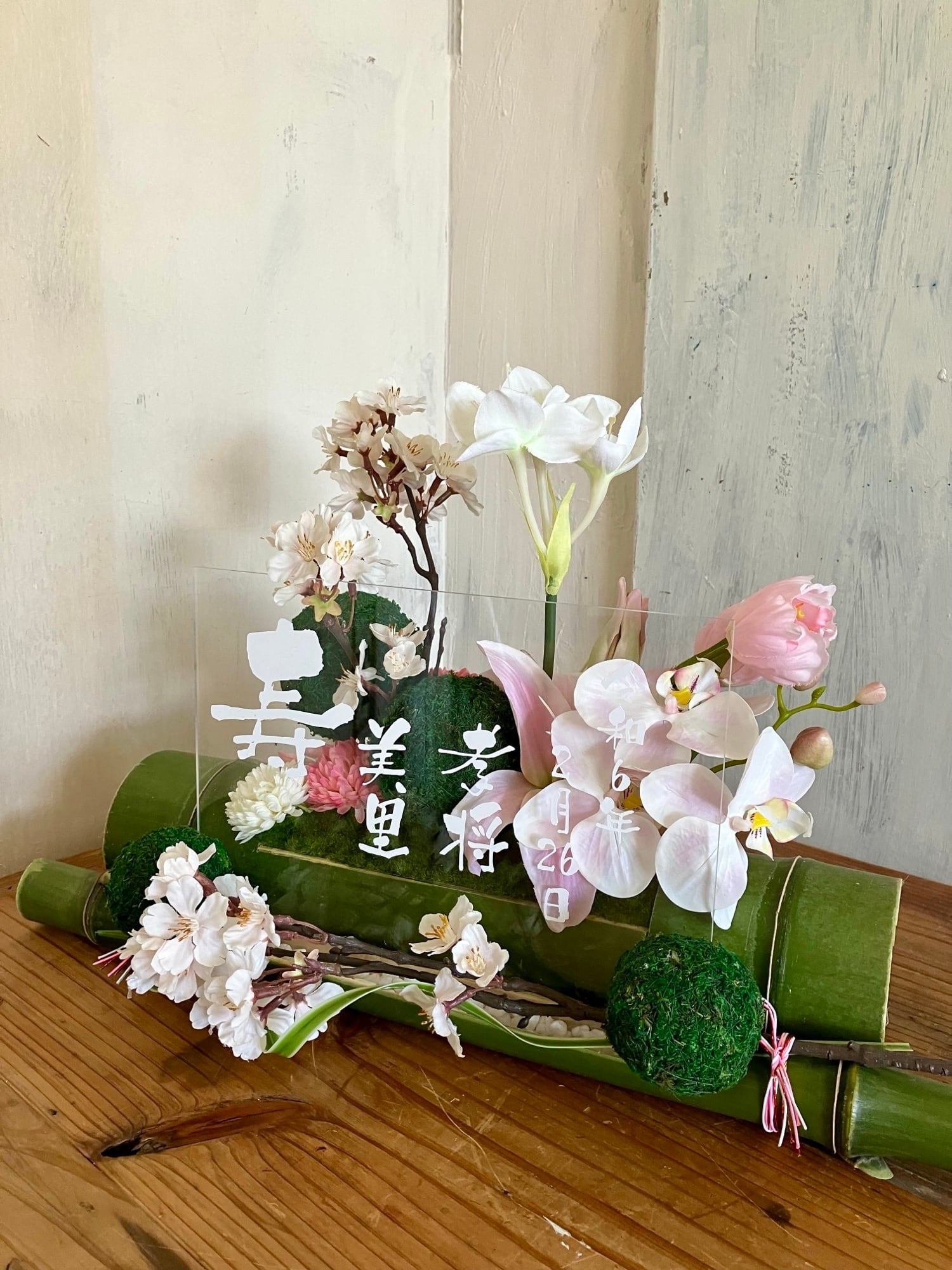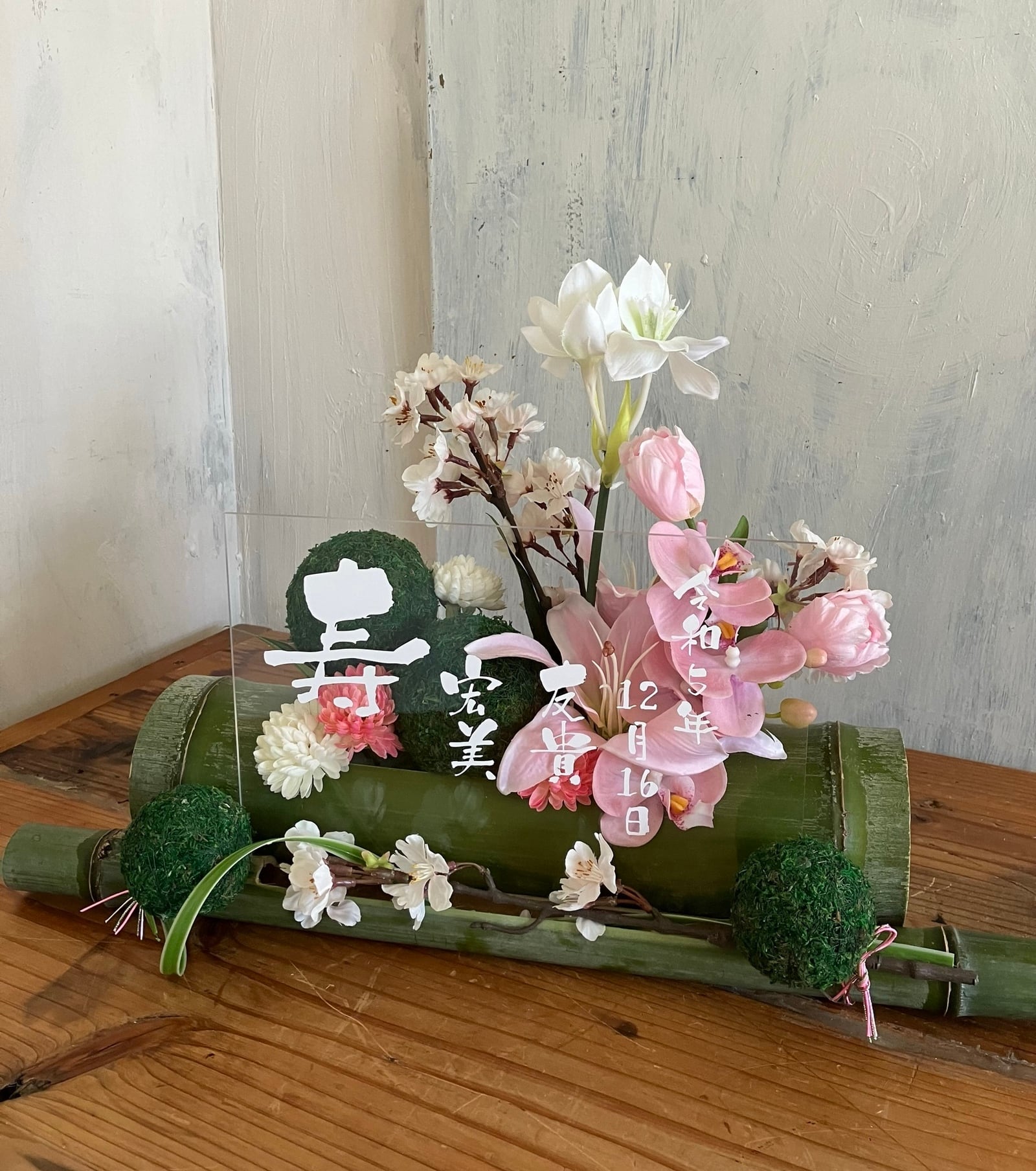 開店祝い・和婚ウェルカムボード・結婚祝い【名入れ】竹アレンジ 和風 桜〈春〉