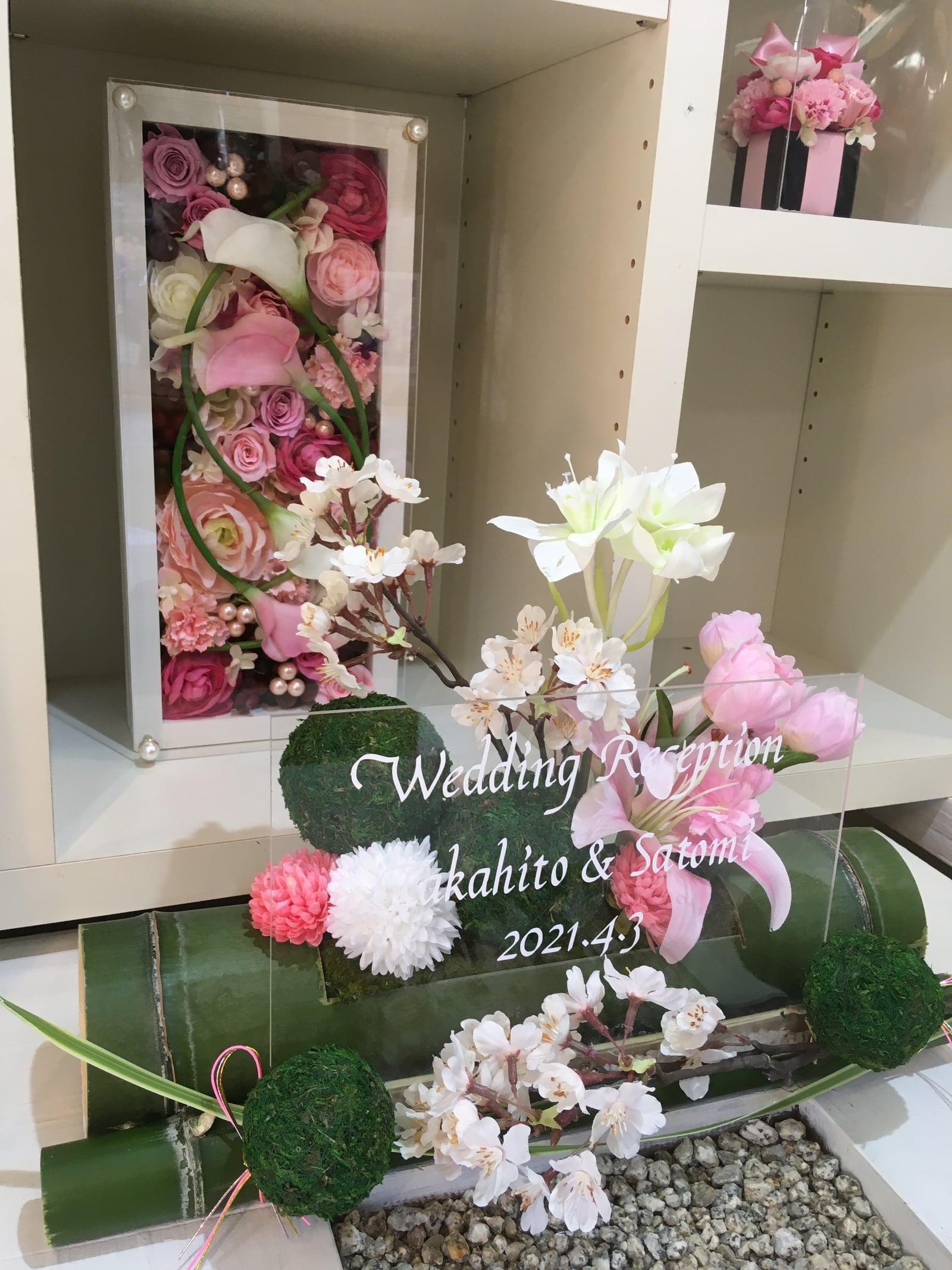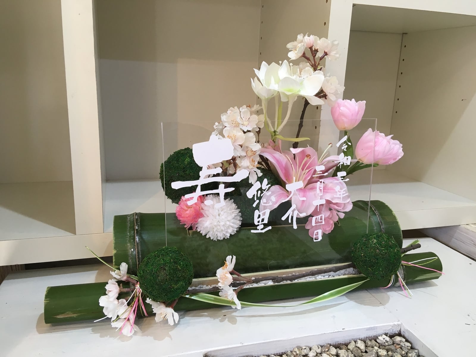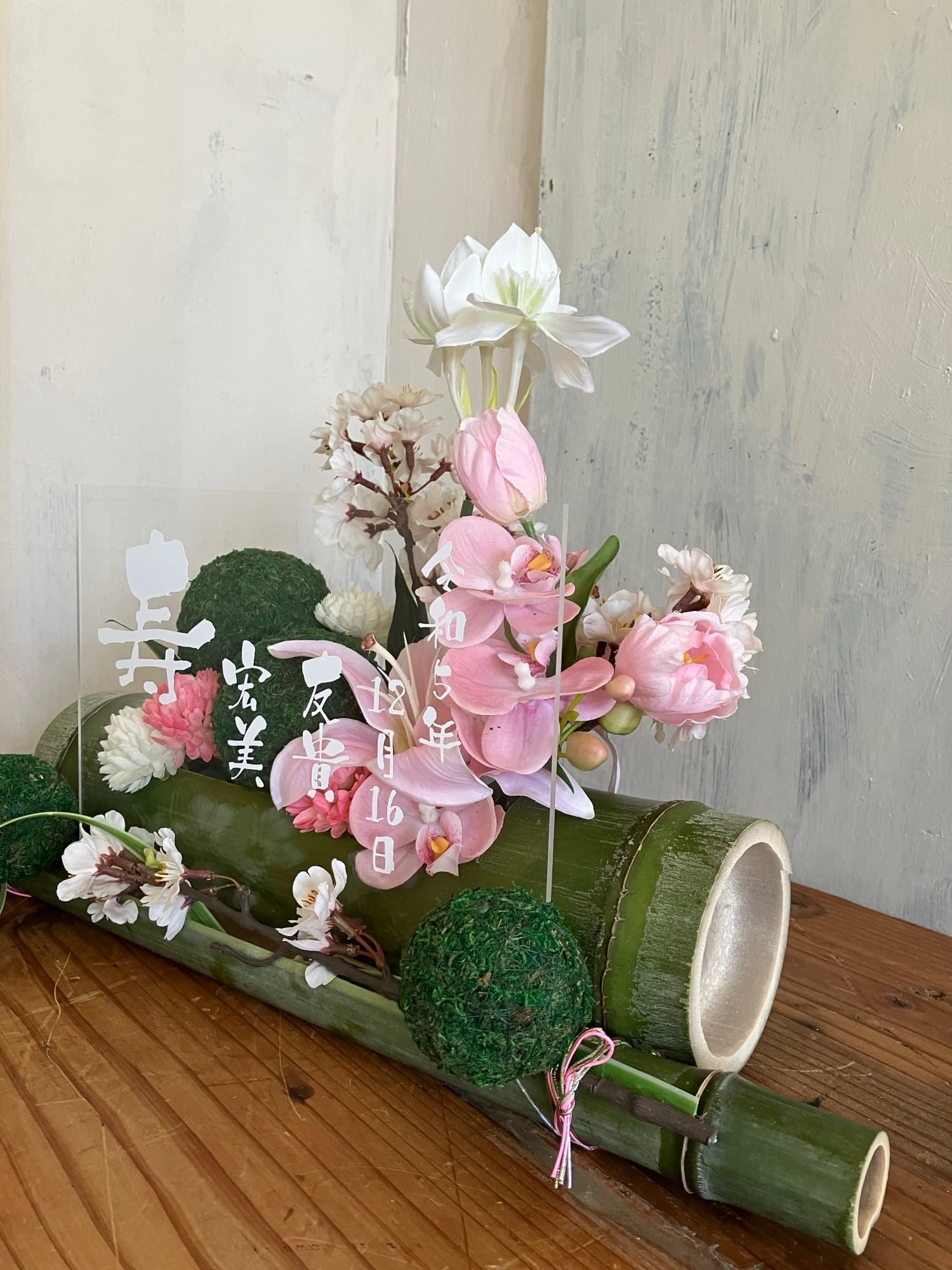 開店祝い・和婚ウェルカムボード・結婚祝い【名入れ】竹アレンジ 和風 桜〈春〉