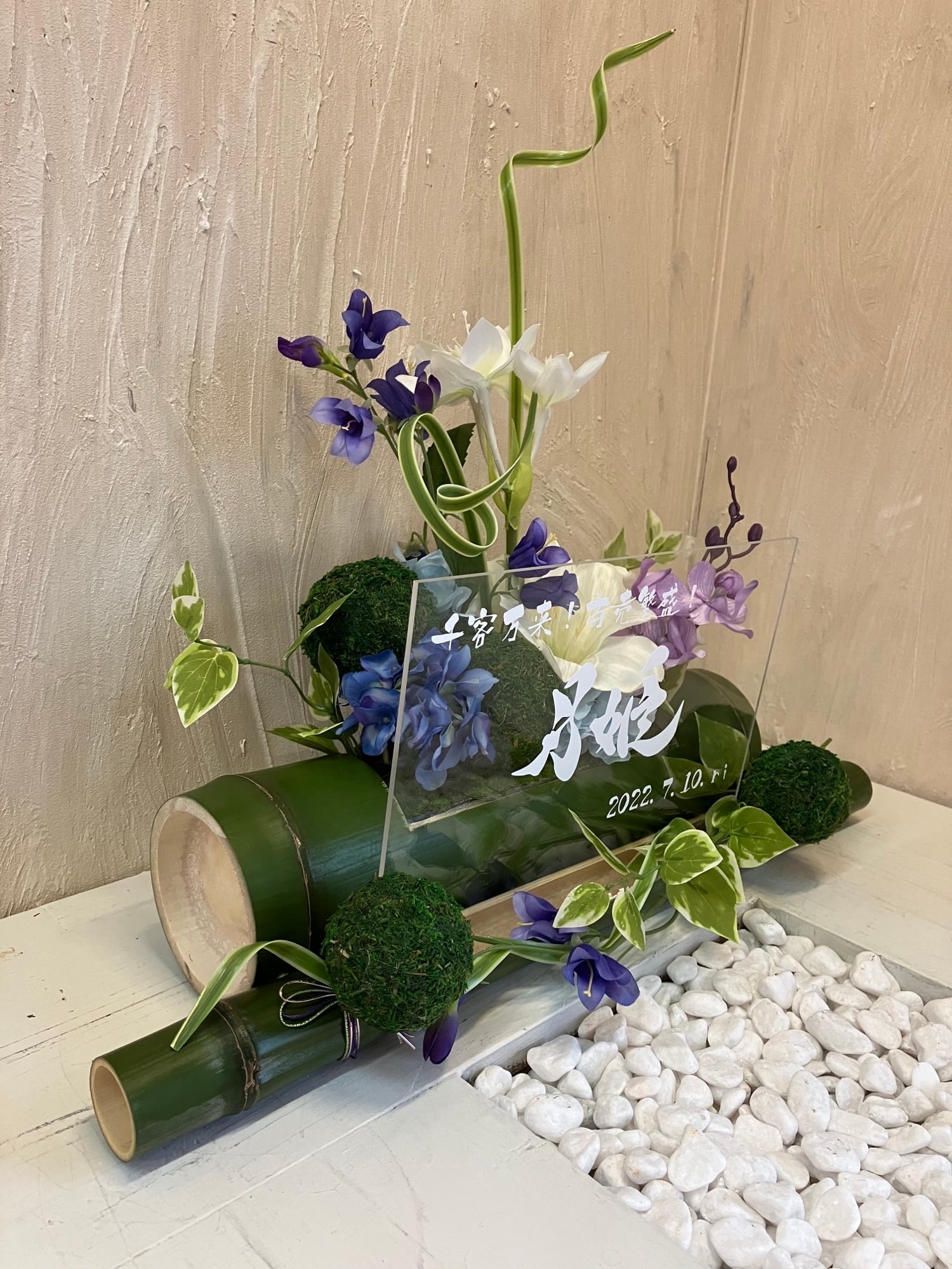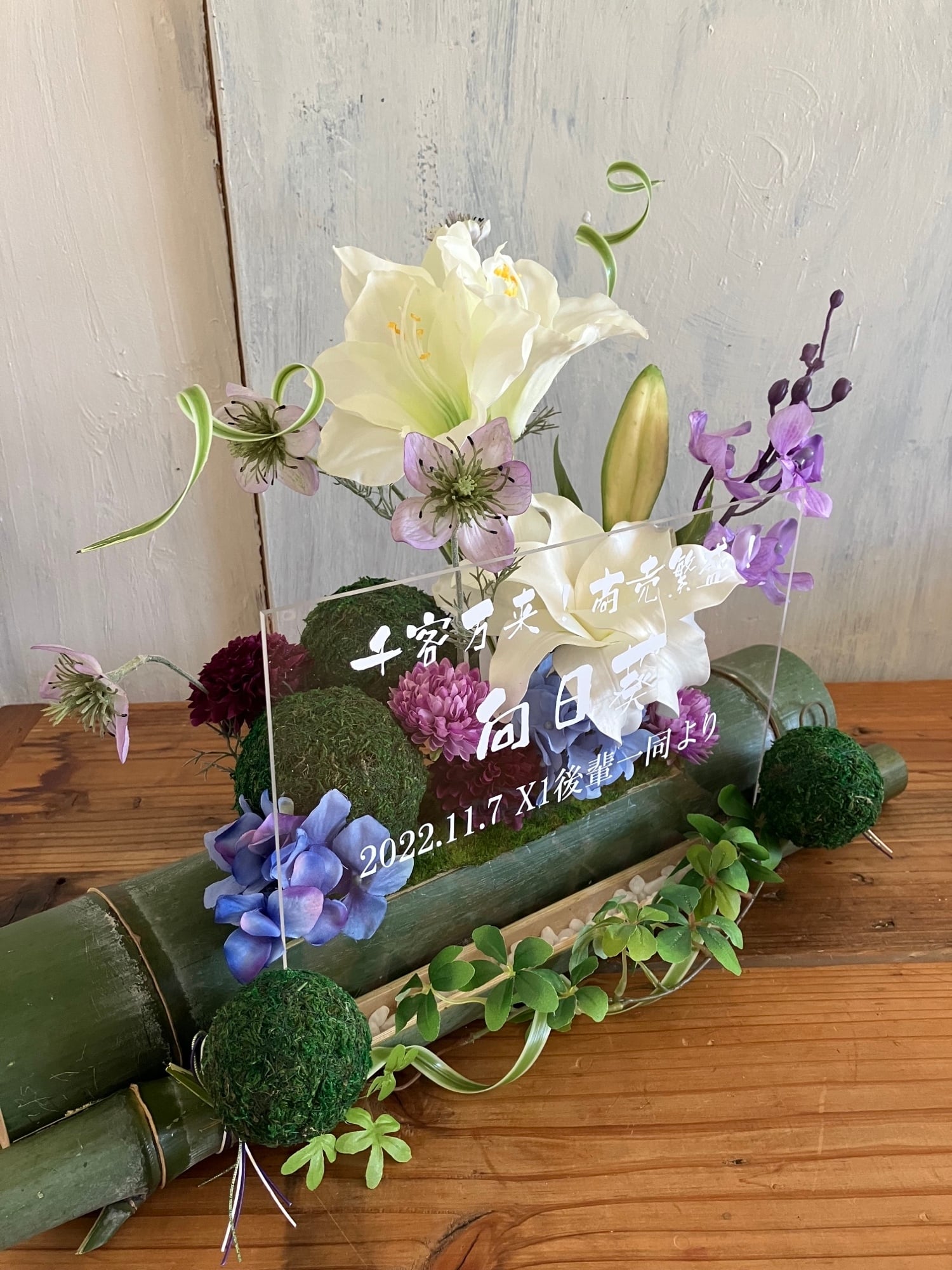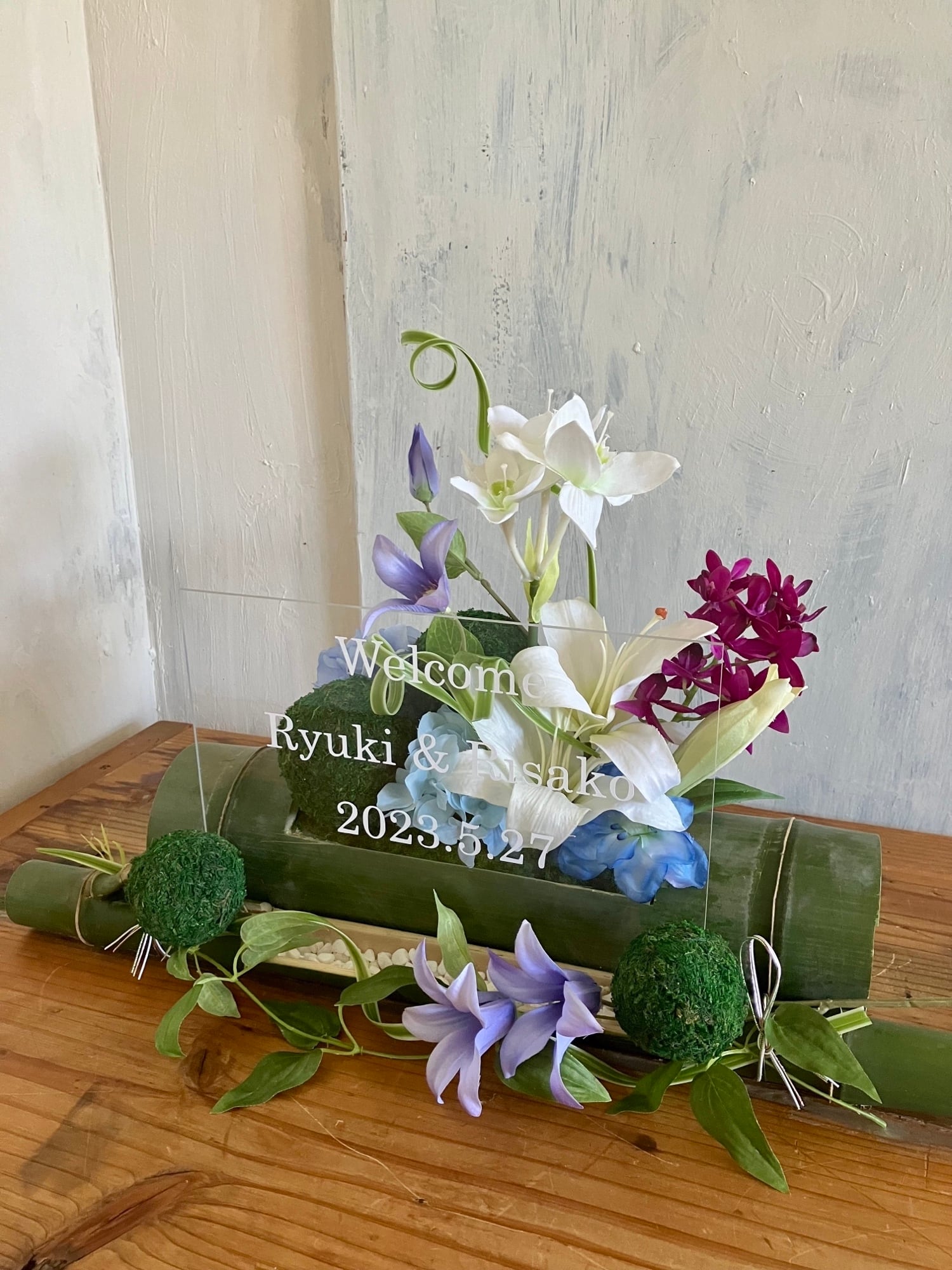 和風ウェルカムボード・開店祝い・和婚ウェルカムボード・結婚祝い【名入れ】竹アレンジ 百合 紫陽花 〈初夏〉