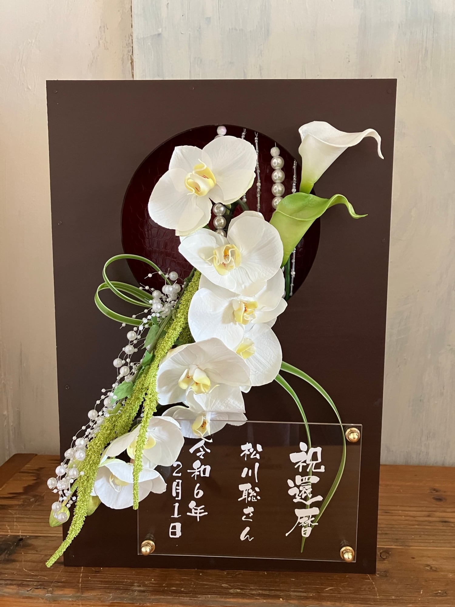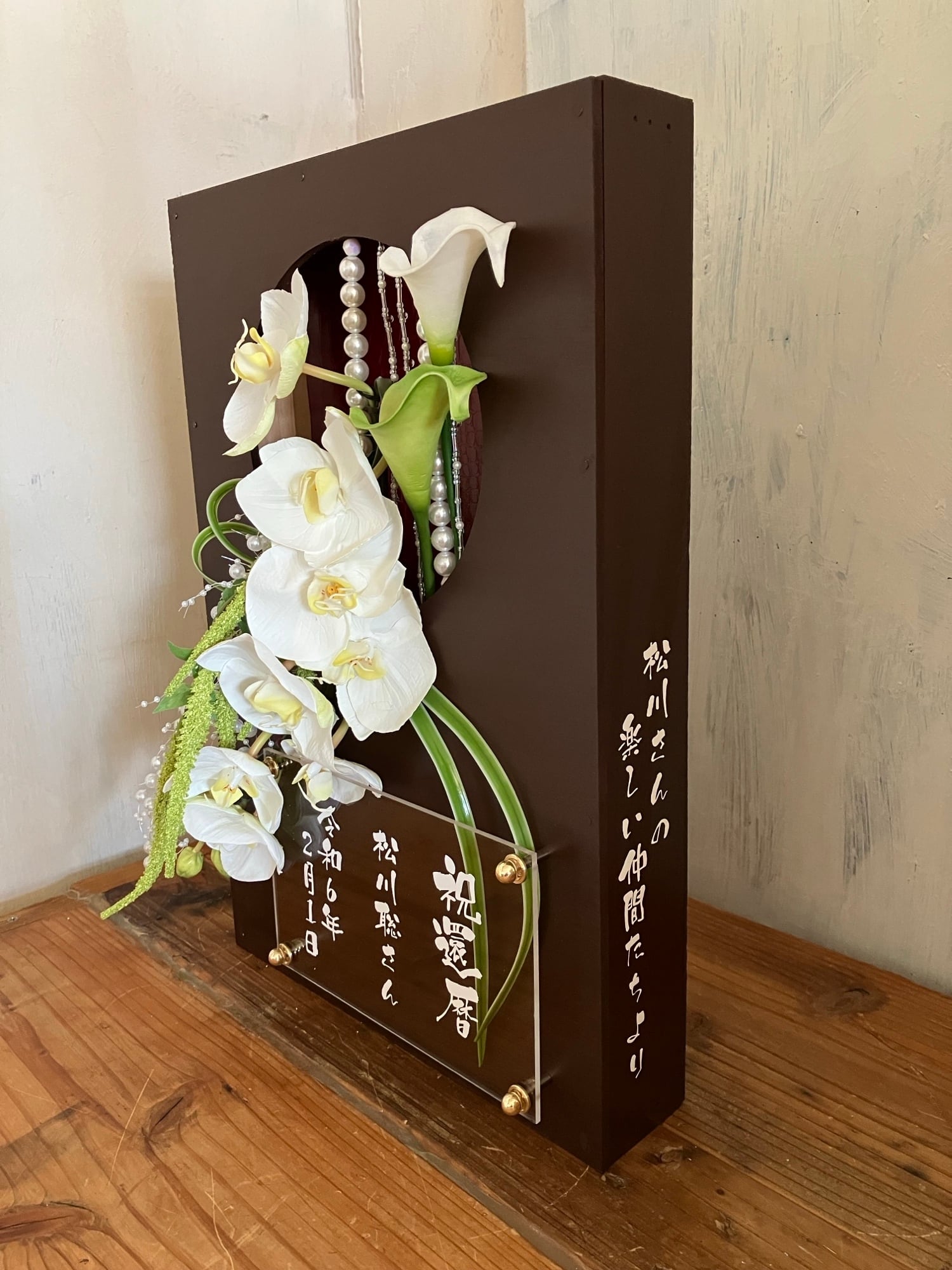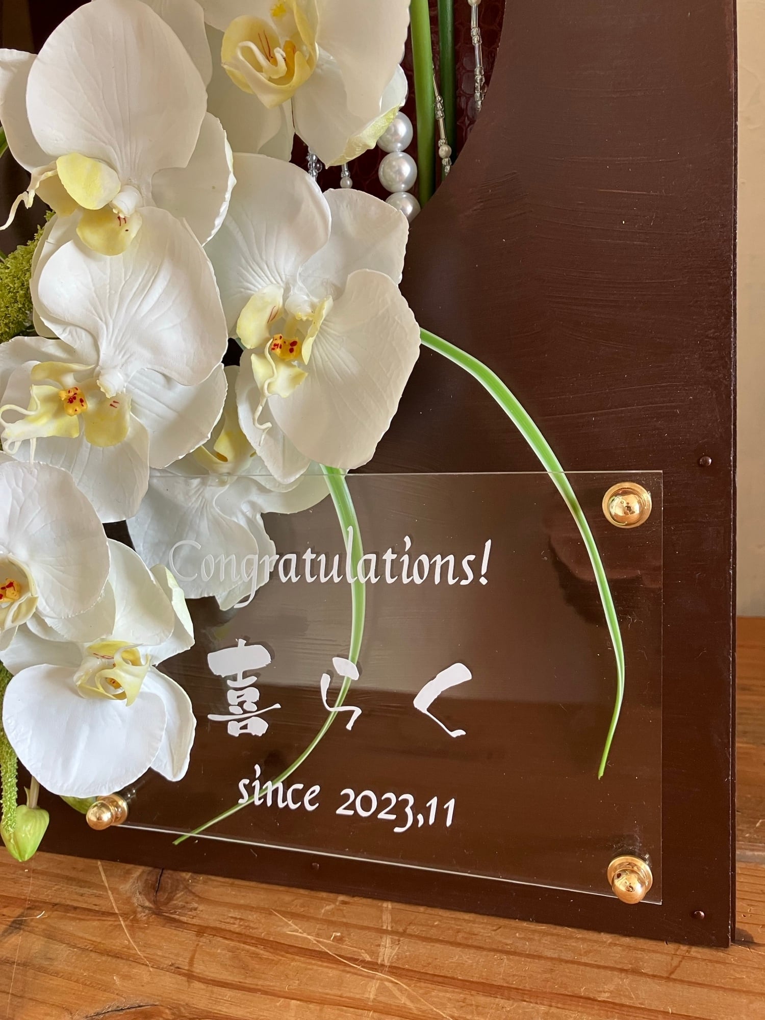 開店祝い・周年祝い・結婚祝い・結婚式ウェルカムボード・還暦祝い【名入れ】 茶木枠窓〈胡蝶蘭〉