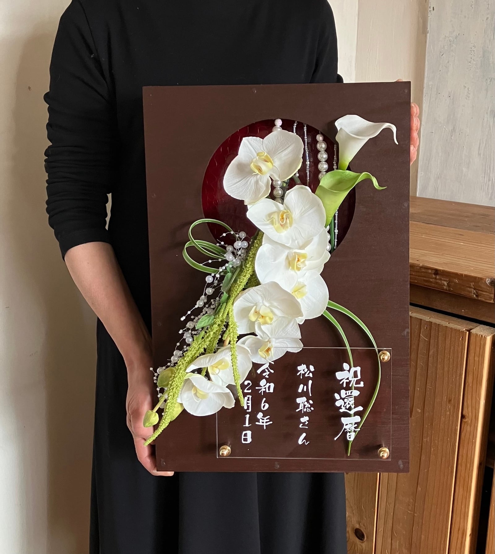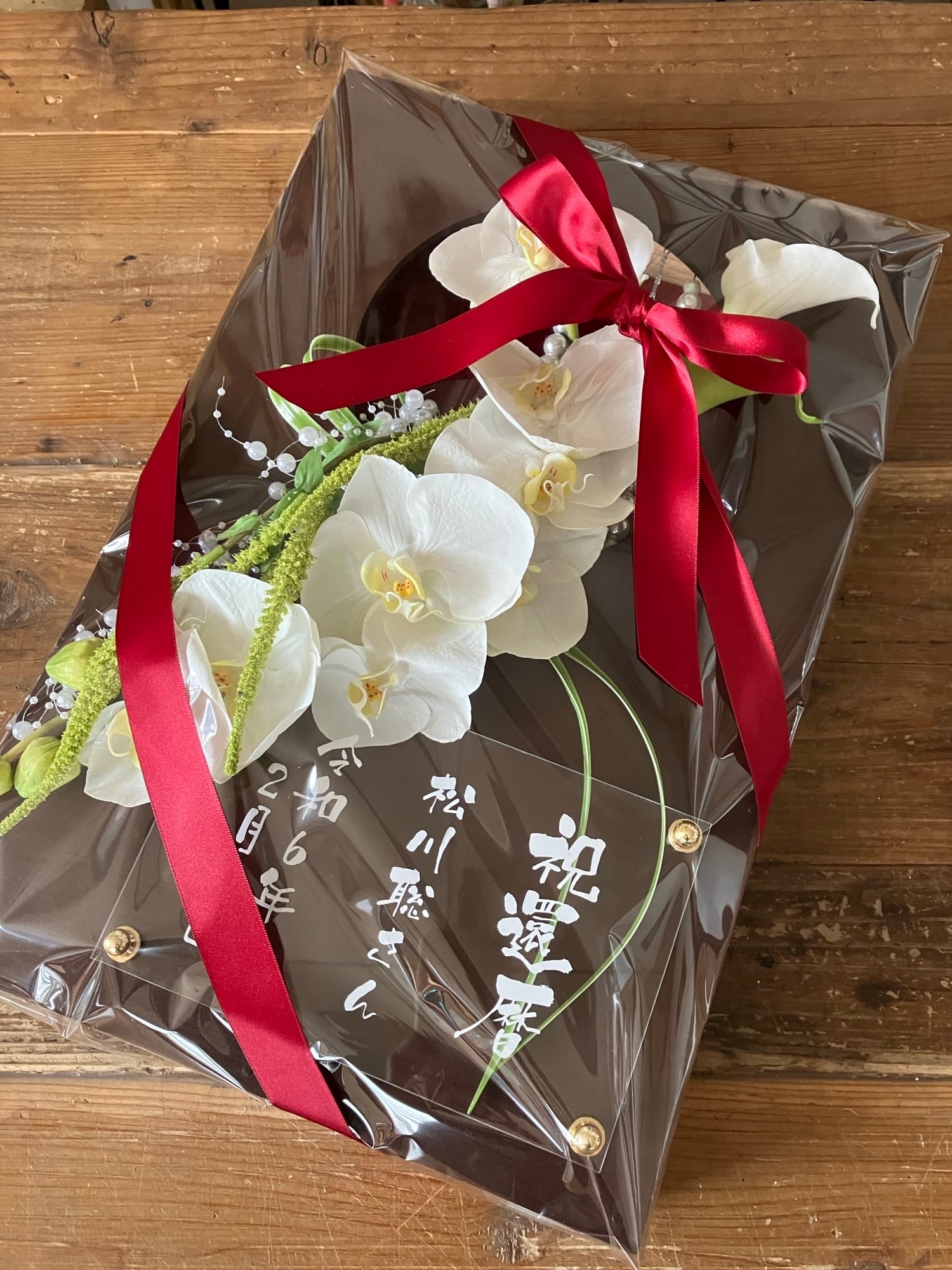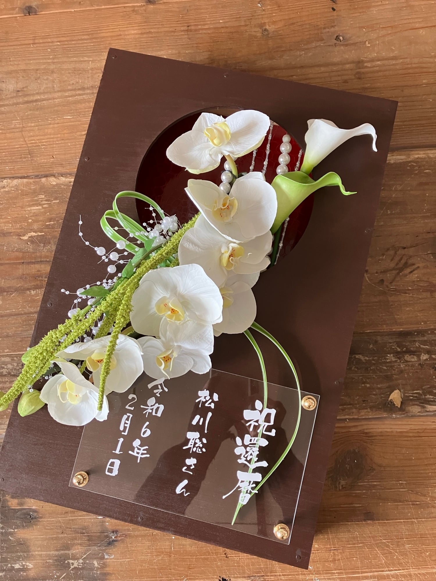開店祝い・周年祝い・結婚祝い・結婚式ウェルカムボード・還暦祝い【名入れ】 茶木枠窓〈胡蝶蘭〉