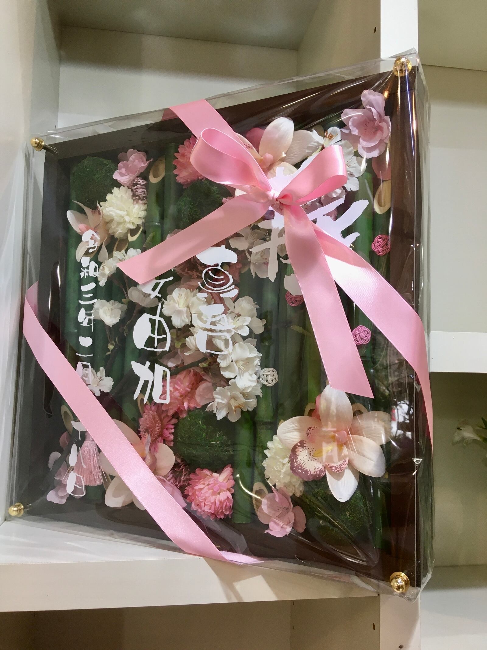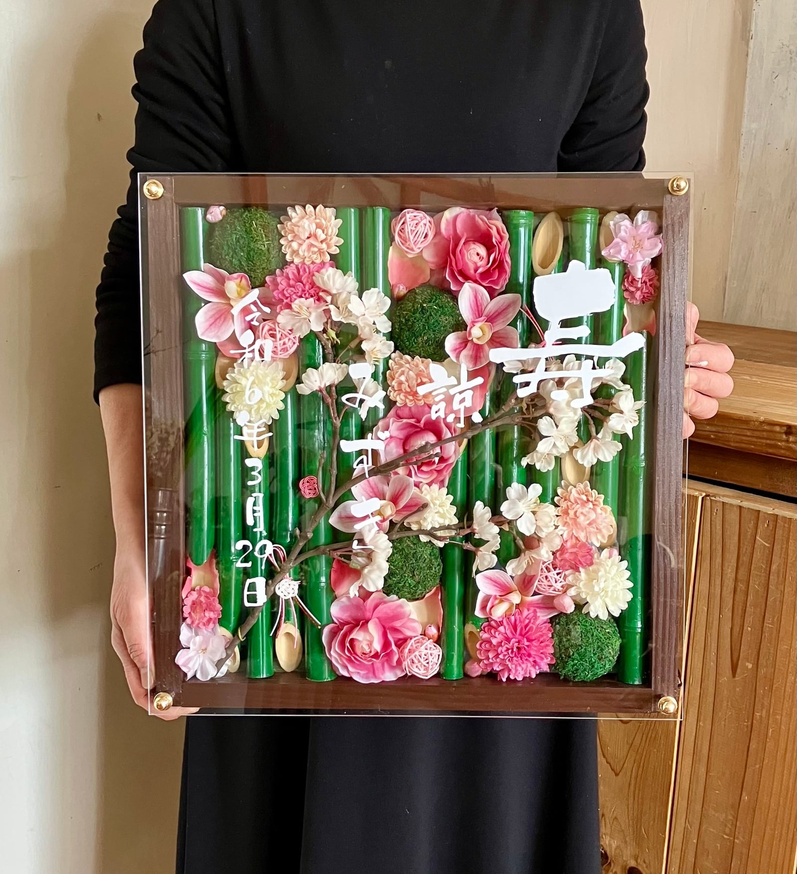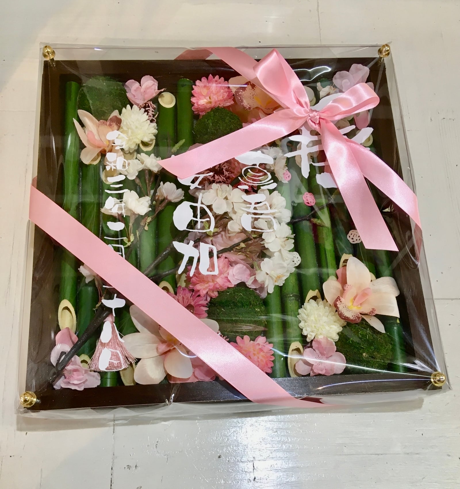 竹を使った季節の名入れお花フレーム