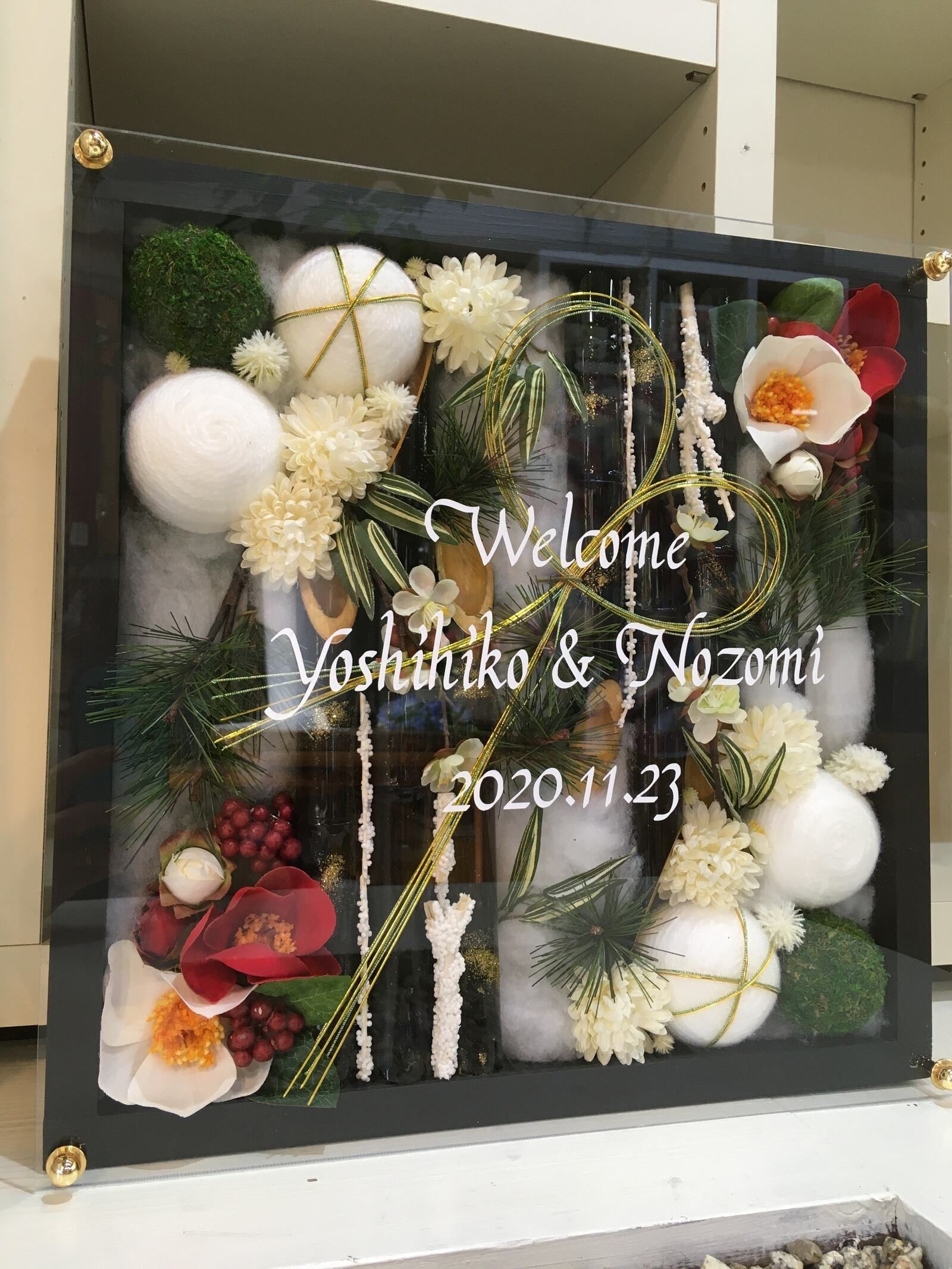 和風ウェルカムボード・開店祝い・周年祝い・結婚祝い・和婚ウェルカムボード【名入れ】ウッドフレーム 黒竹 椿 松黒木枠〈冬〉