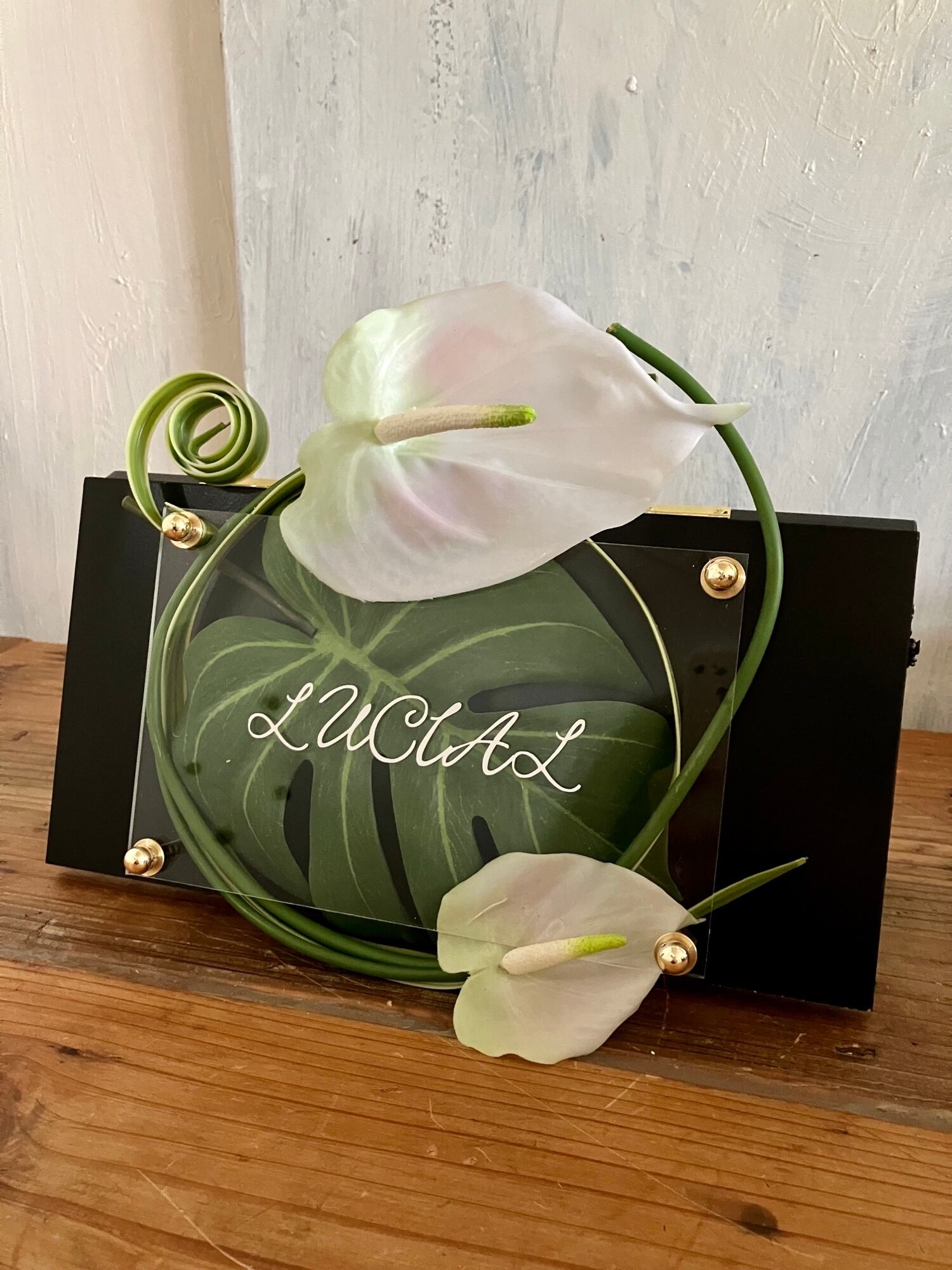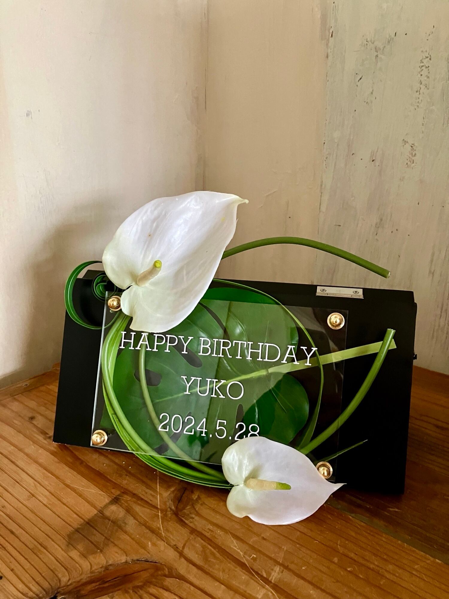 開店祝い・サロンオープン祝い・結婚祝い・お誕生日祝い【名入れ】スタンドタイプ〈モンステラ/アンスリューム〉