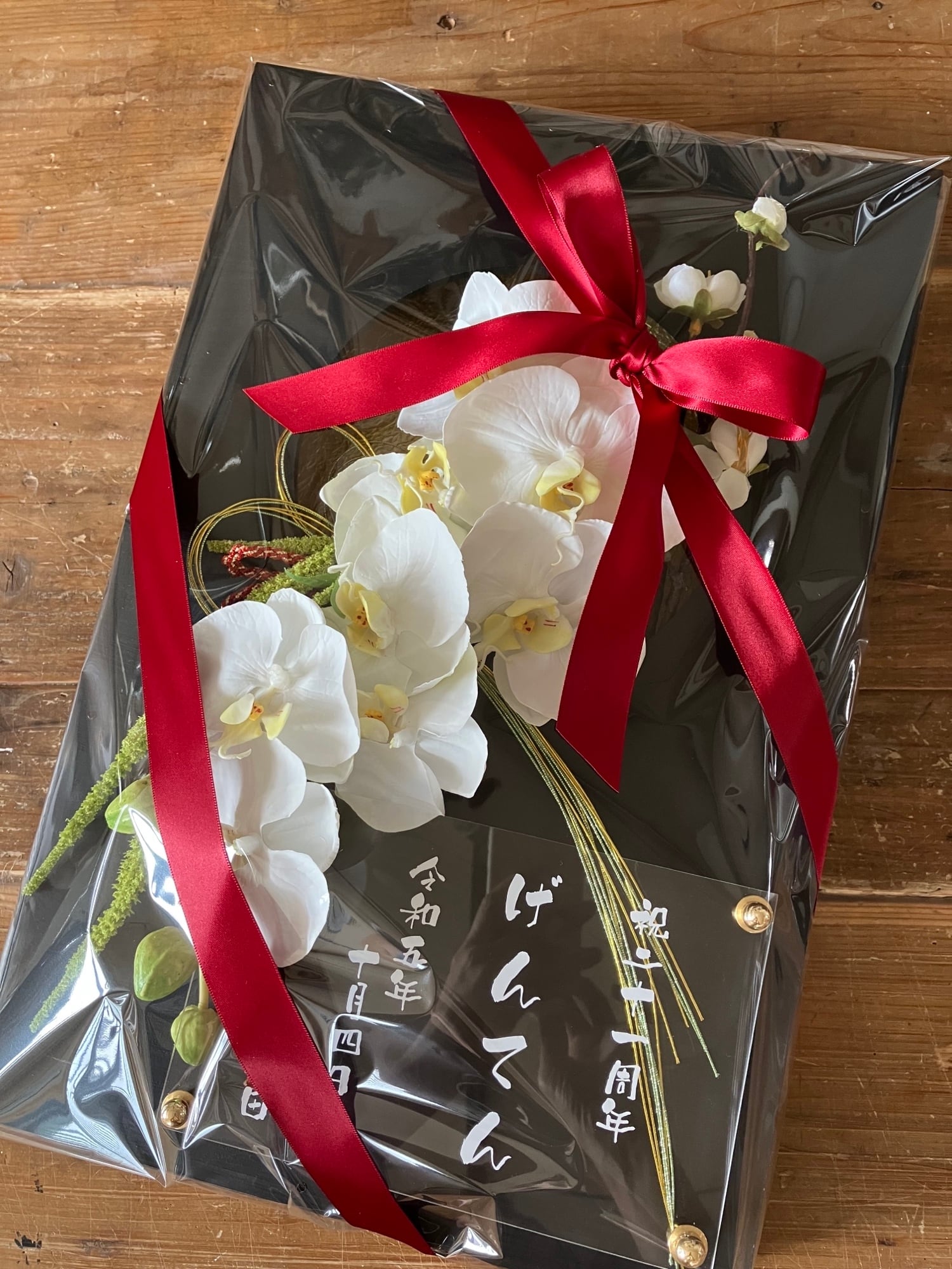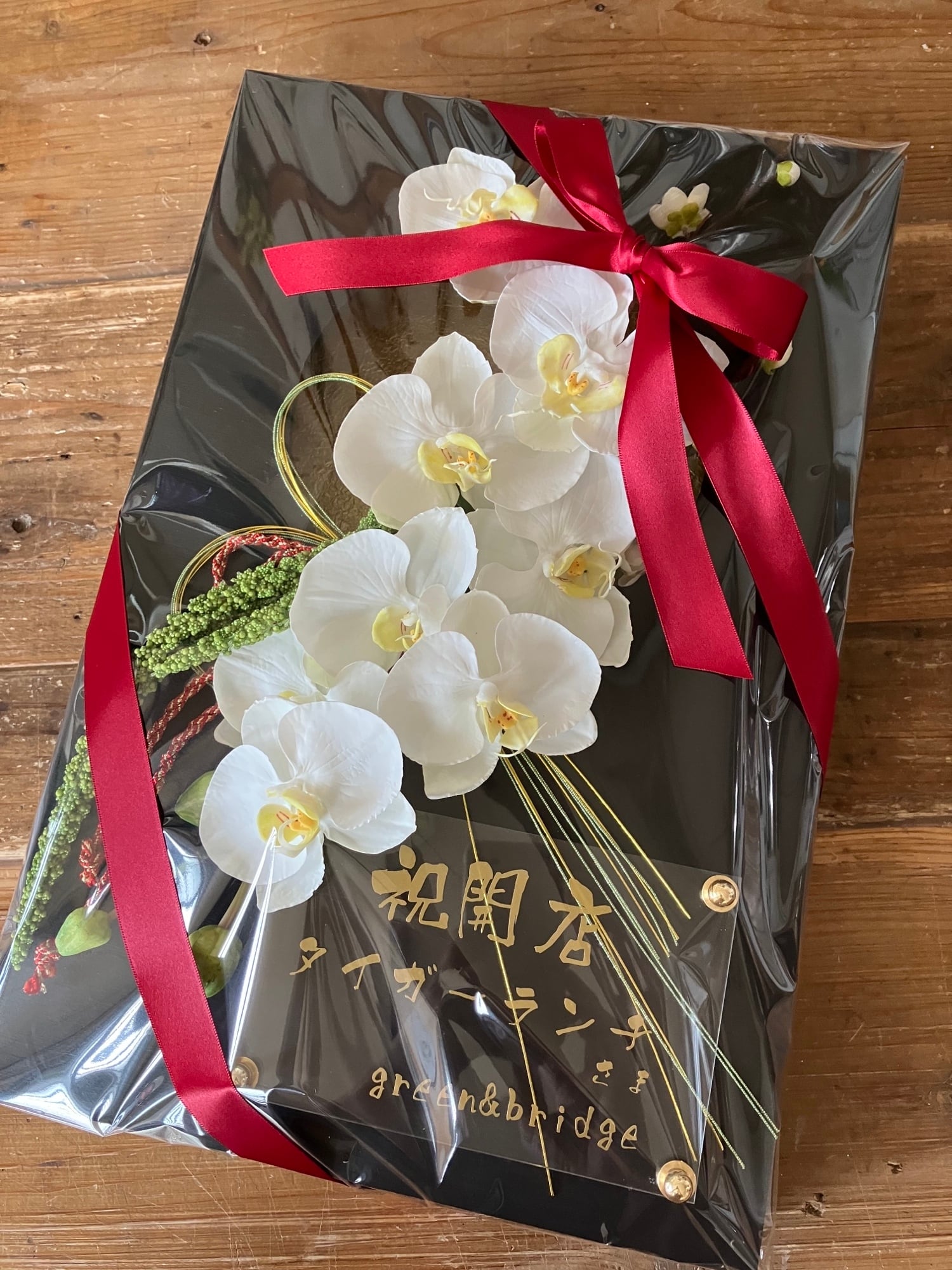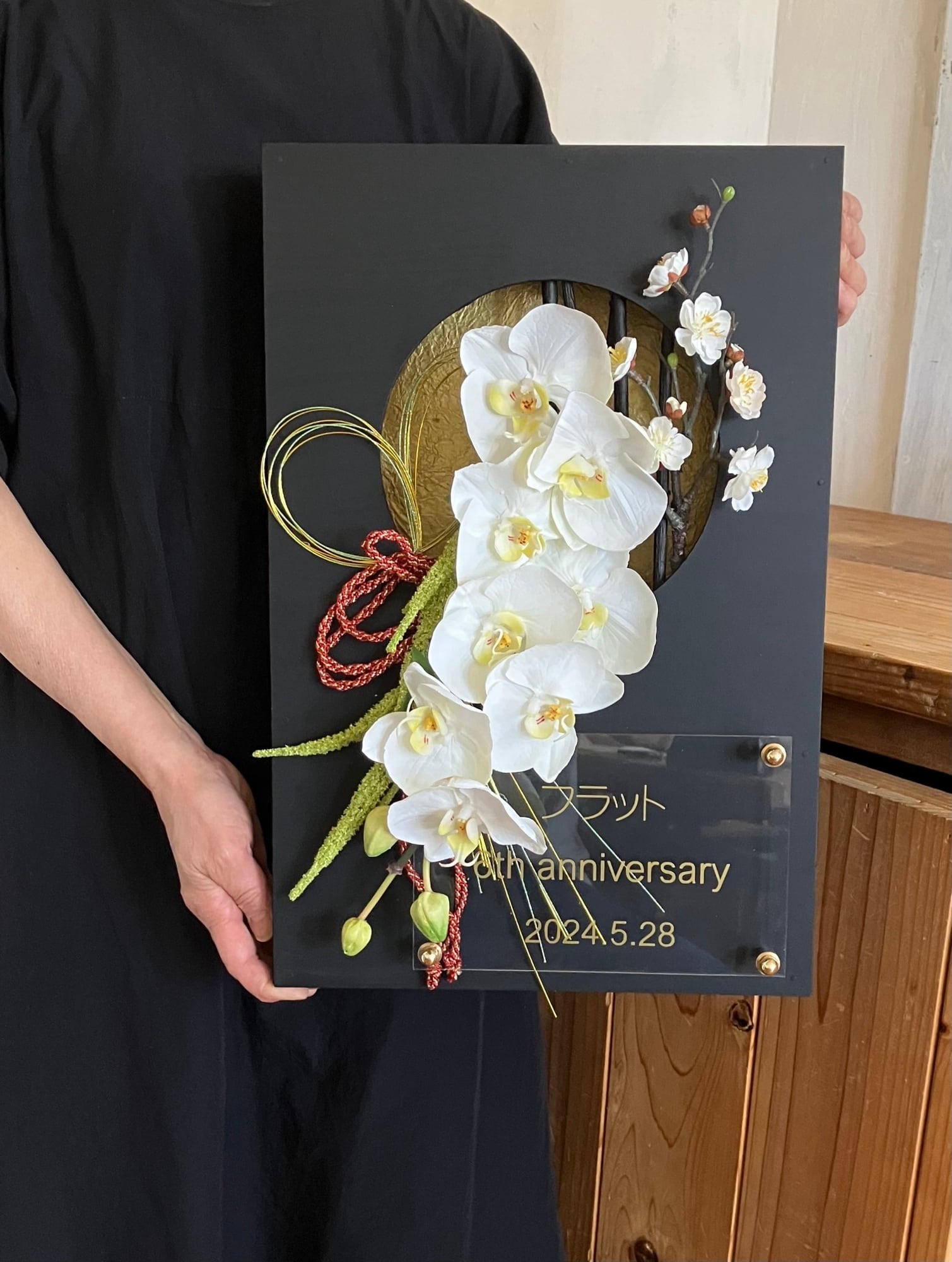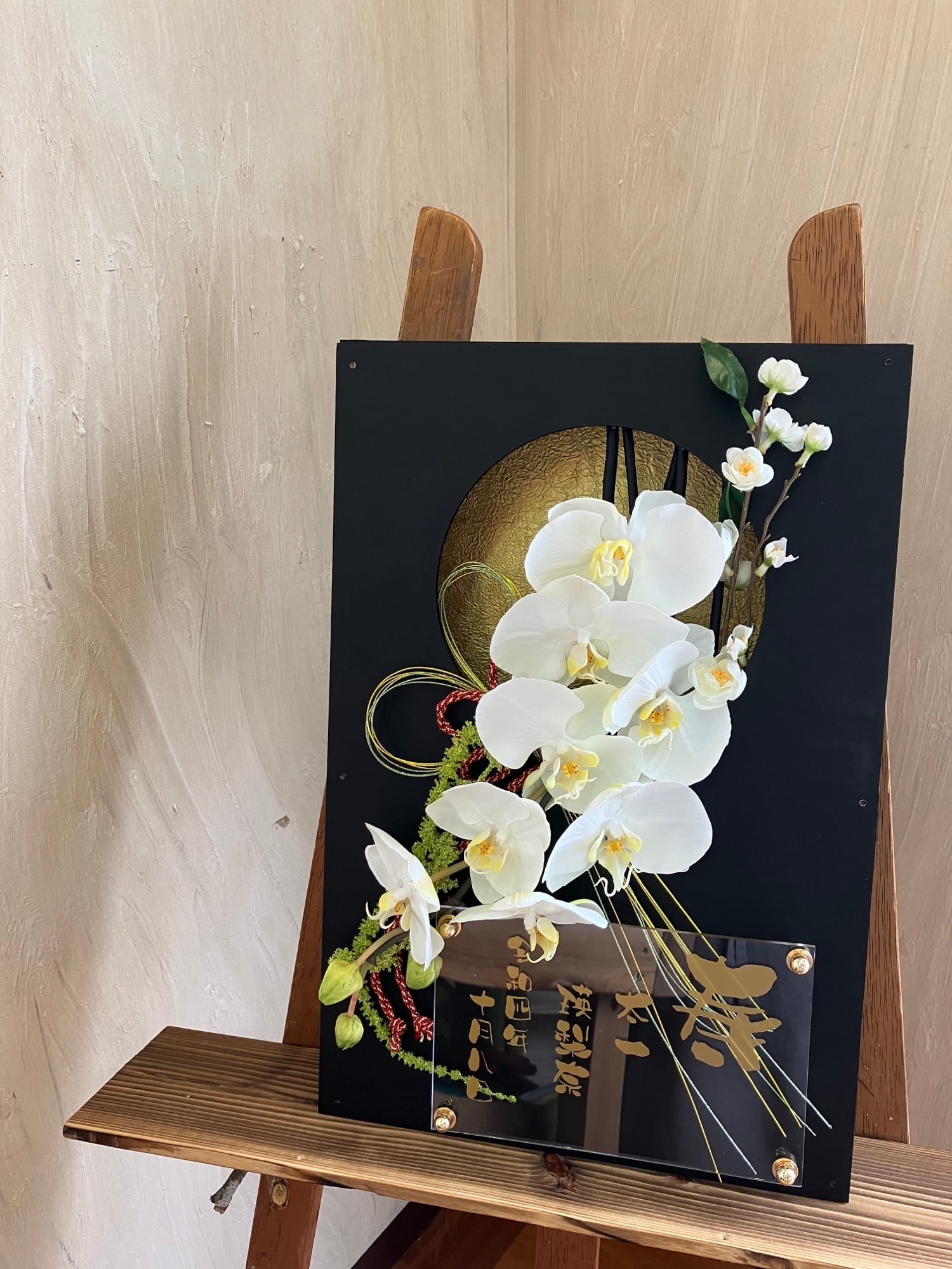 開店祝い・周年祝い・結婚祝い・和婚ウェルカムボード・還暦祝い【名入れ】 黒木枠窓〈和風 胡蝶蘭〉