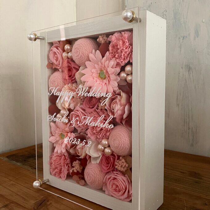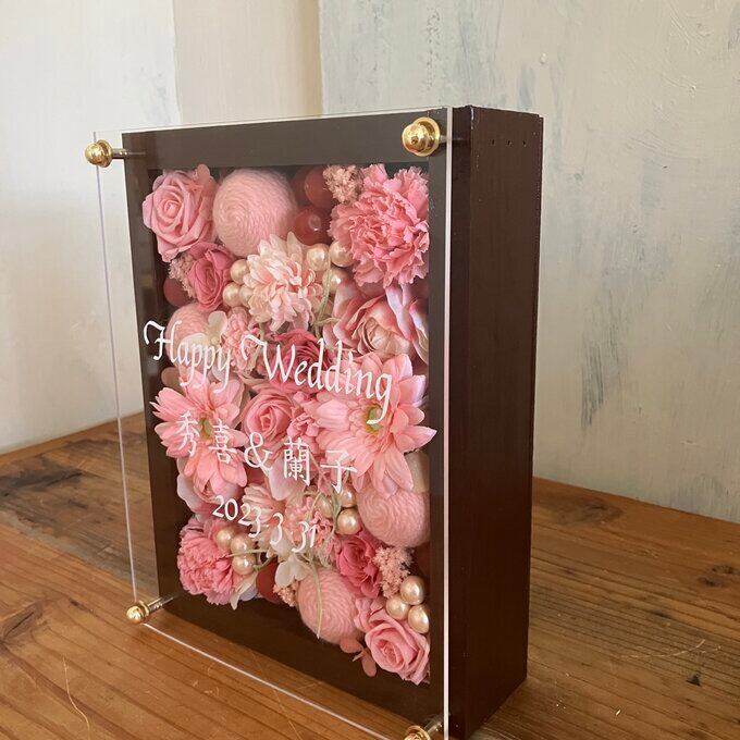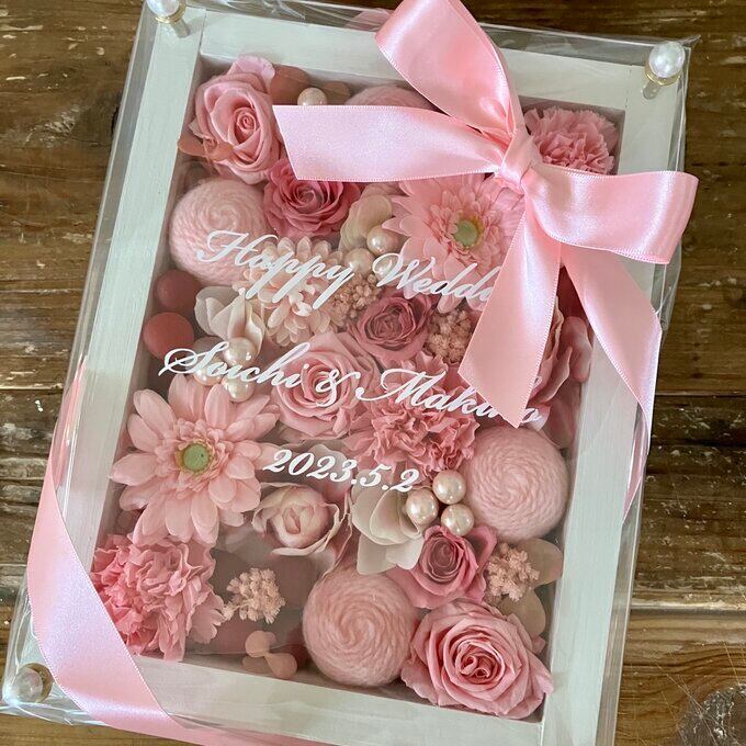 サンクスギフト|木枠〈ピンク〉名入れ可/結婚・記念日・退職祝いに