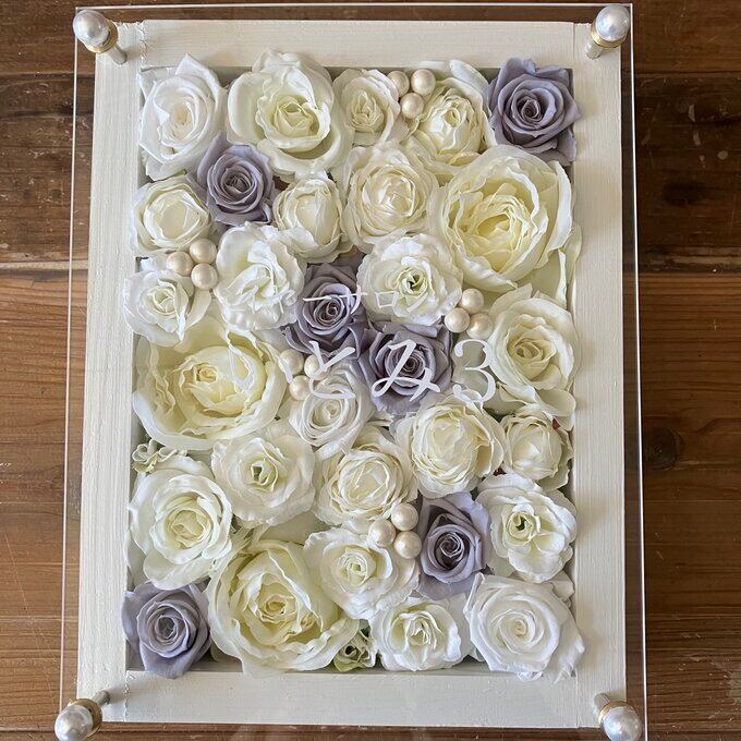 サンクスギフト|木枠〈白グレーバラ〉名入れ可/開店・結婚・退職祝いに