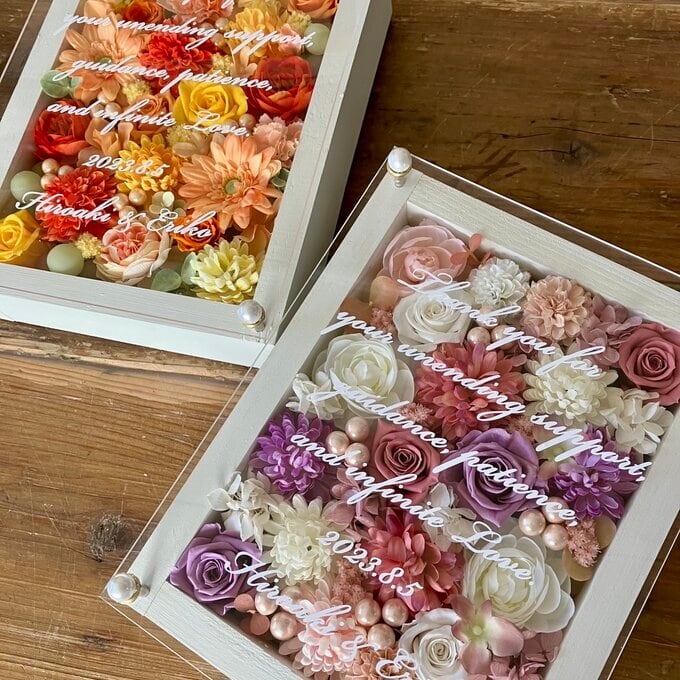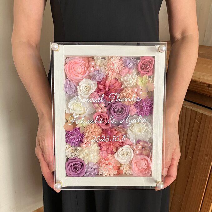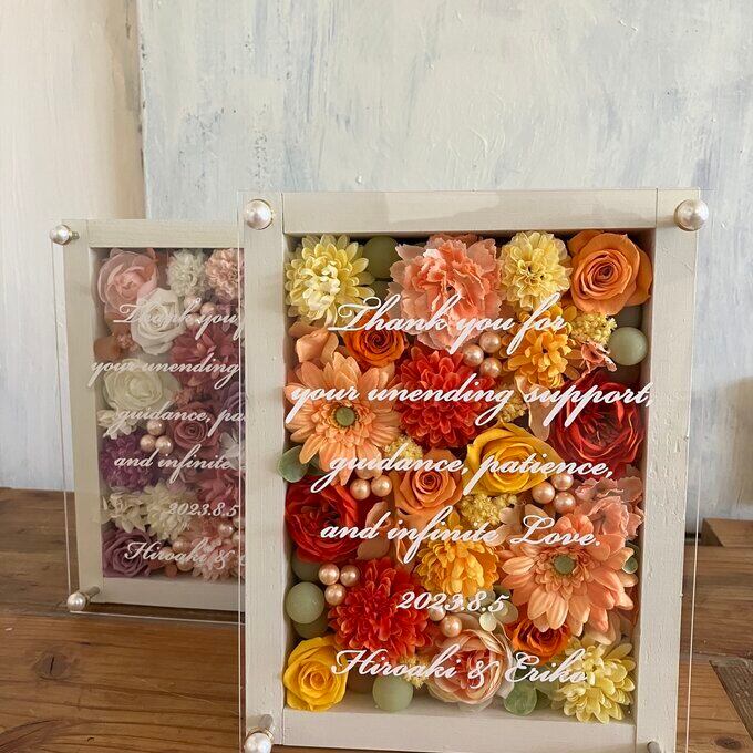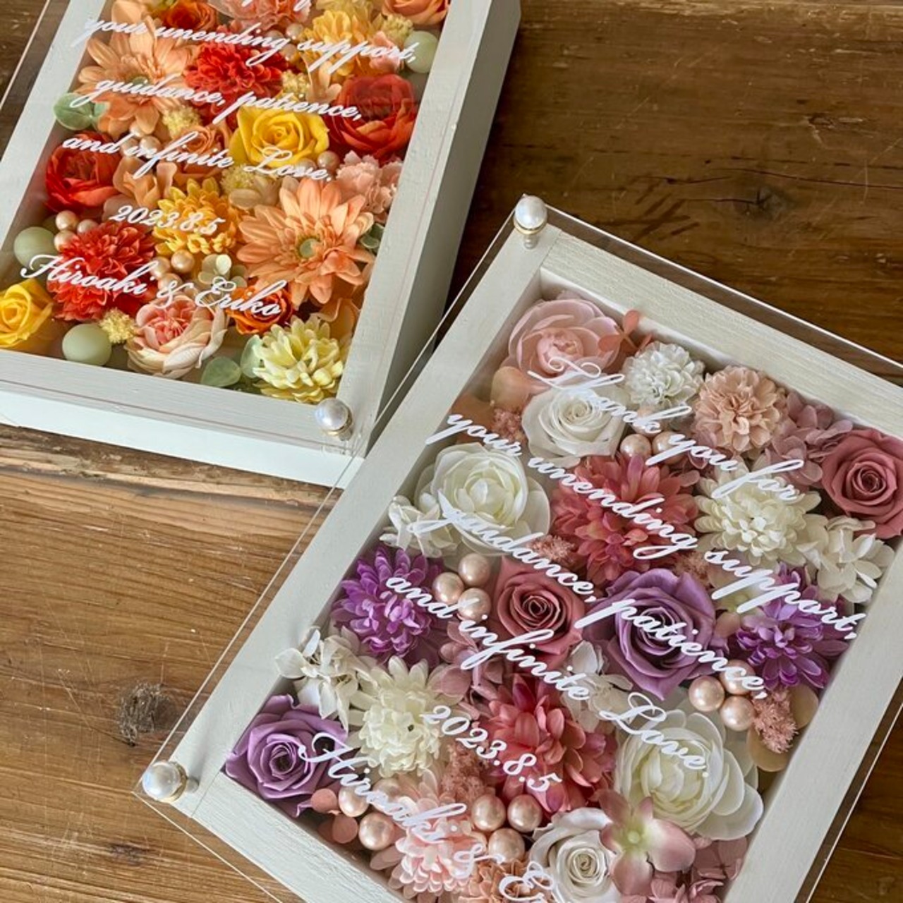 サンクスギフト|結婚式 プリザーブドフラワー ウッドフレーム〈イエロー&パープル〉2個セット